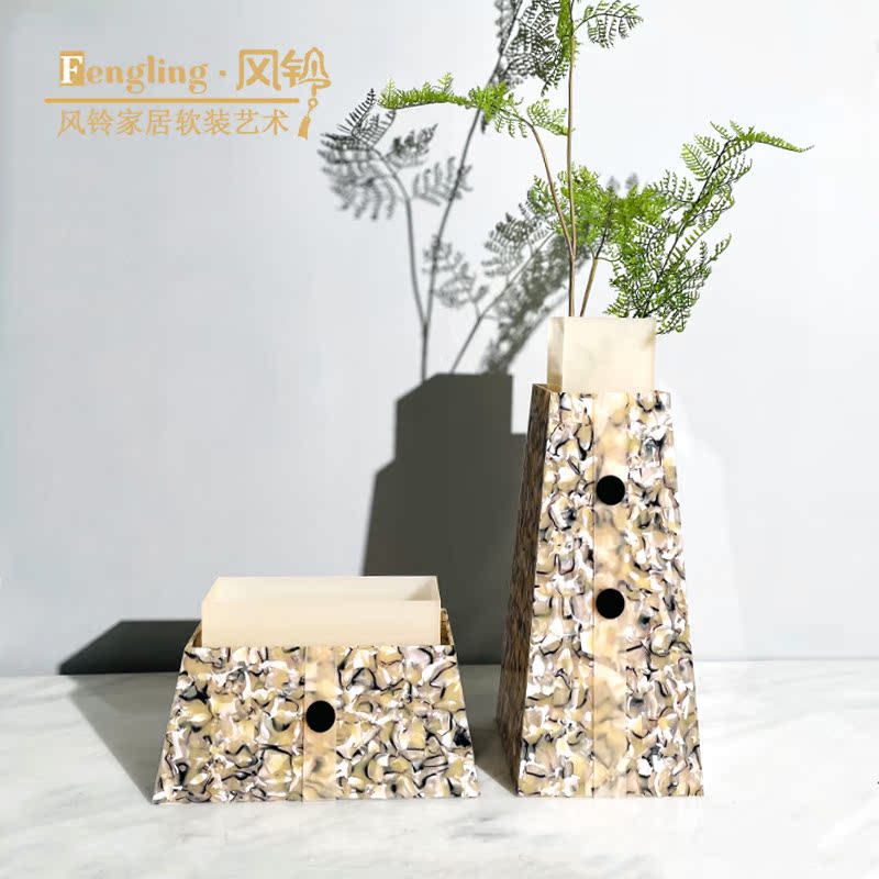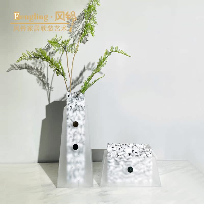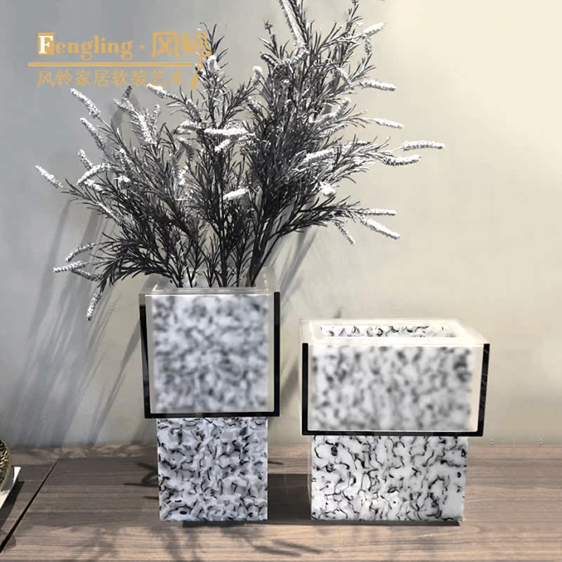 现代轻奢亚克力创意仿水磨石花器客厅餐厅摆件样板房装饰品