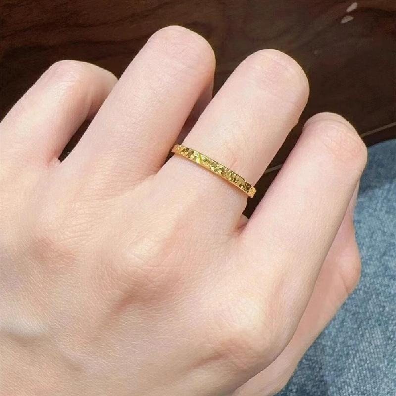 黄金碎碎冰戒指情侣满天星碎冰冰仿真金戒子爆闪素圈指环新