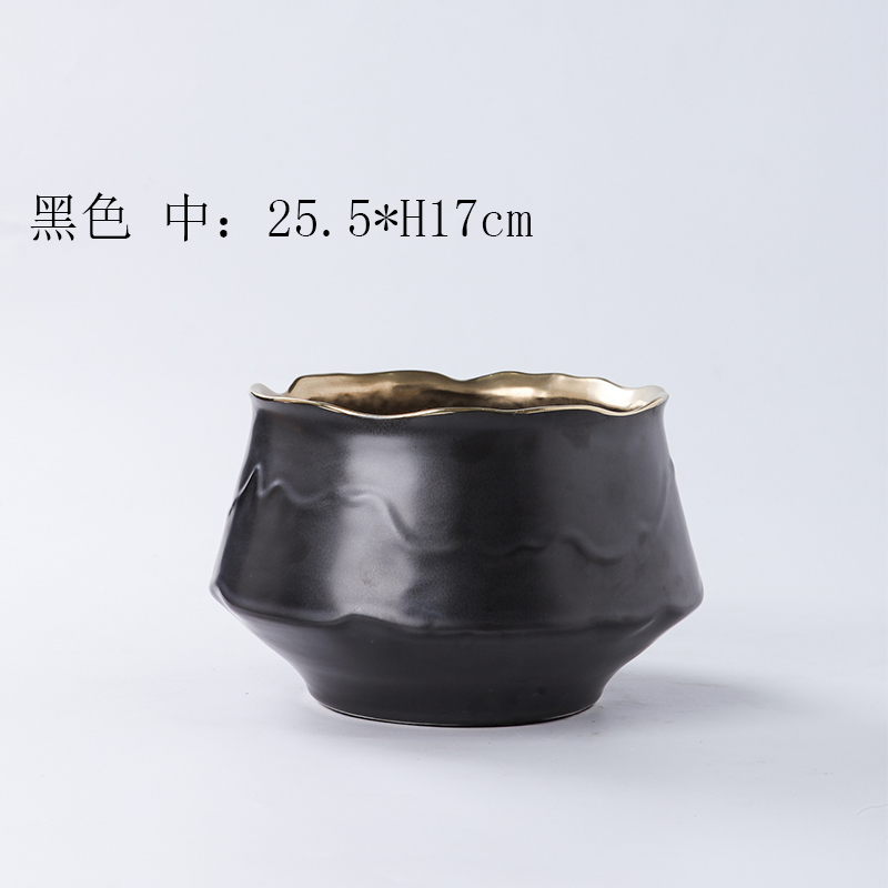 现代简约黑白内金陶瓷花瓶花盆摆件家居客厅餐桌插花器果盘装饰品