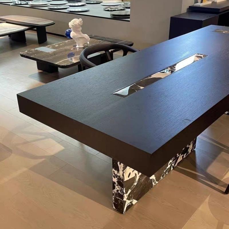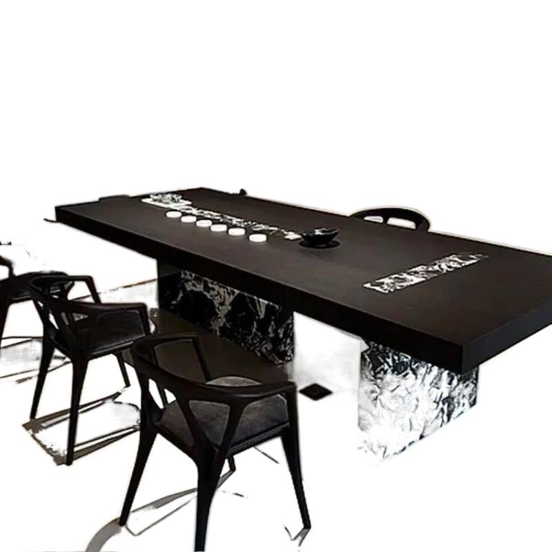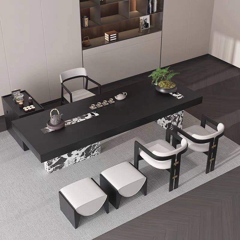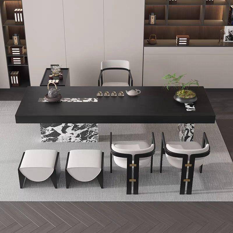 中式实木桌椅茶桌组合办公办公室别墅设计师轻奢岩板泡茶茶台