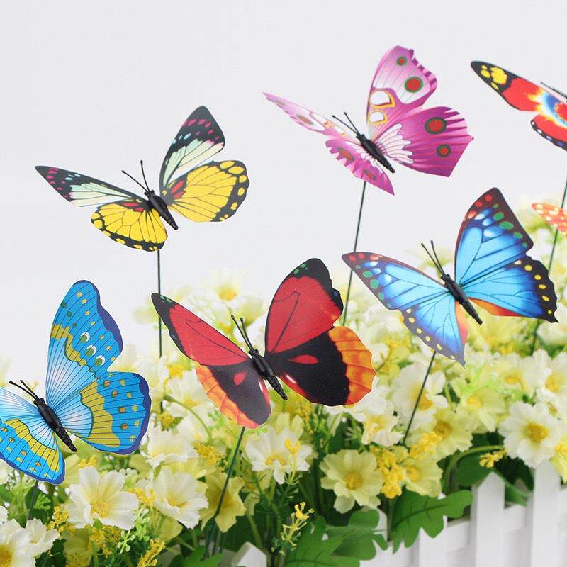 跨境杆插花盆栽园艺园林家居装饰美化绿植装饰 7CM仿真蝴蝶装饰品