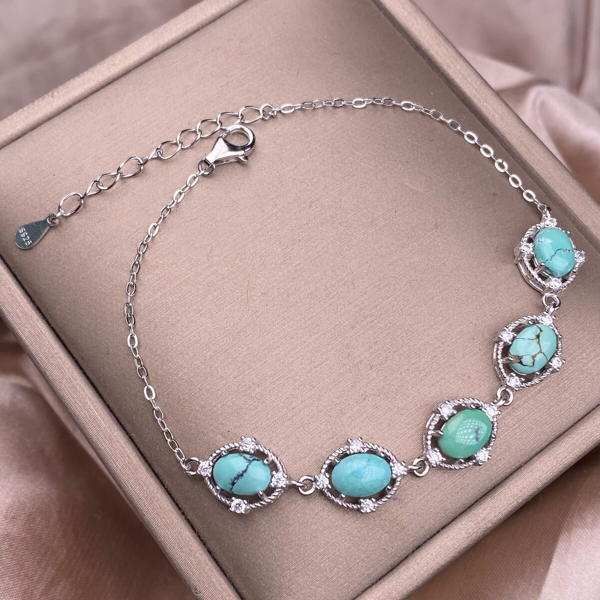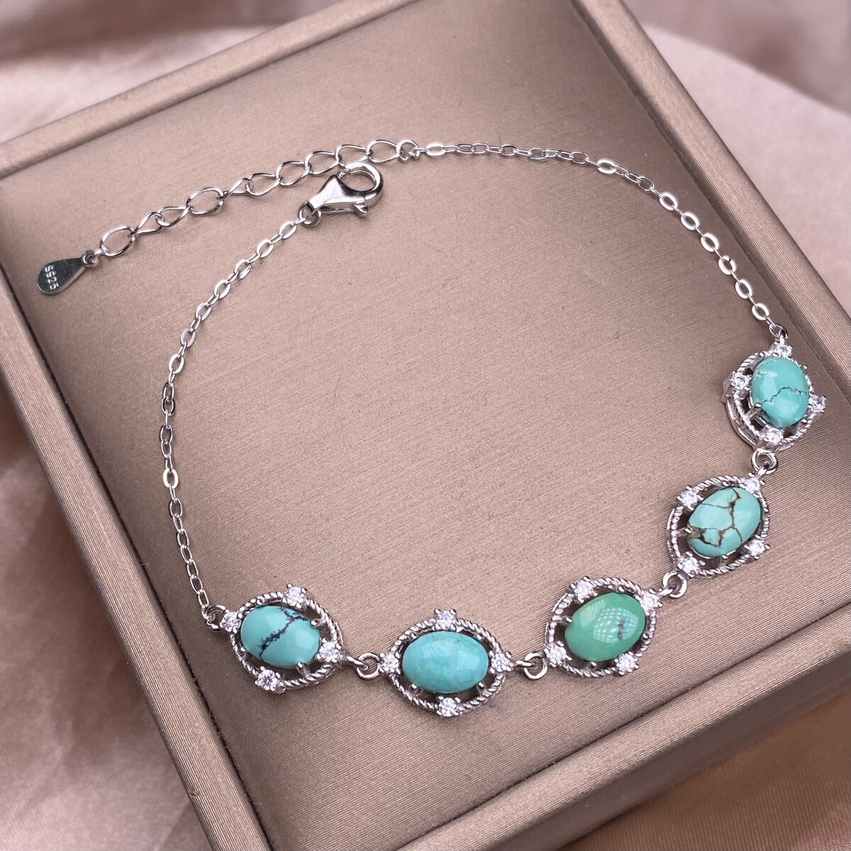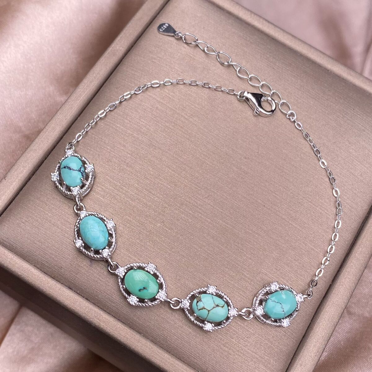 松石手链S925银镶嵌通勤百搭时尚OL精致简约女款湖北绿松石手饰品