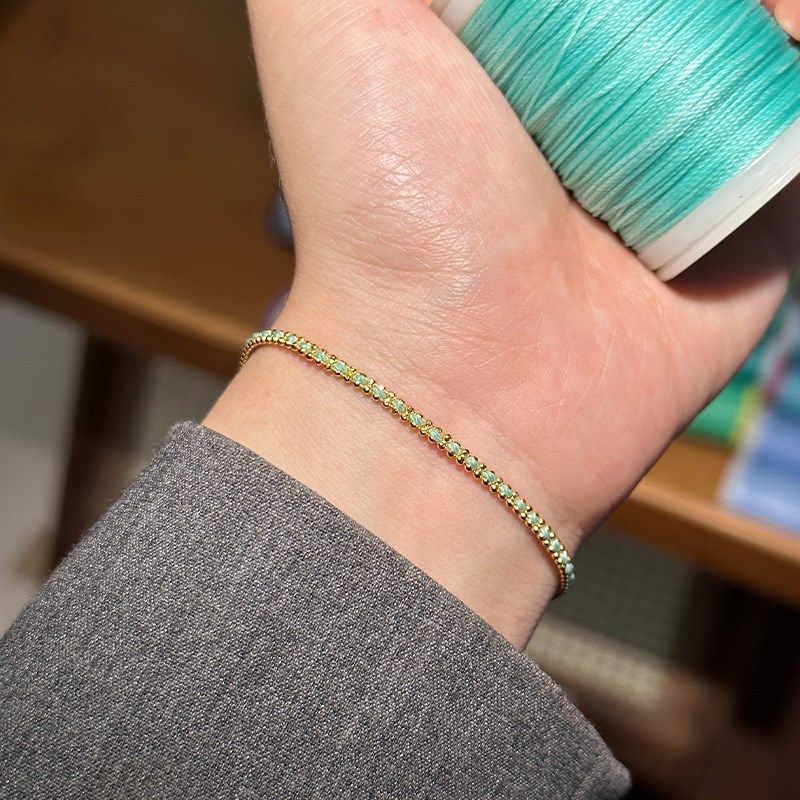 Houhou本命年法国小红绳红色编织珠珠手链情侣幸运手工手绳925银