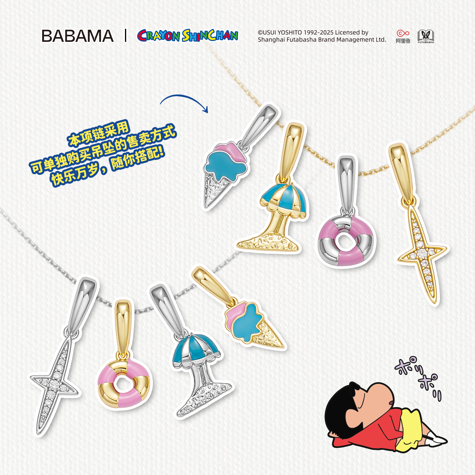 生日礼物babama蜡笔小新系列闪亮度假项链情侣吊坠女小众设计