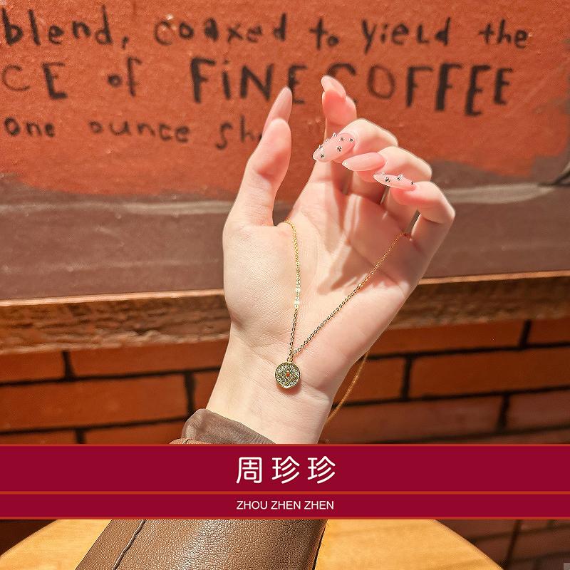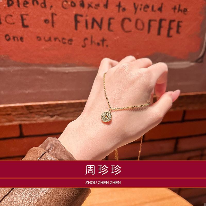 周珍珍18K双面招财平安铜钱钻石吊坠满钻情侣礼物项链本命年送礼