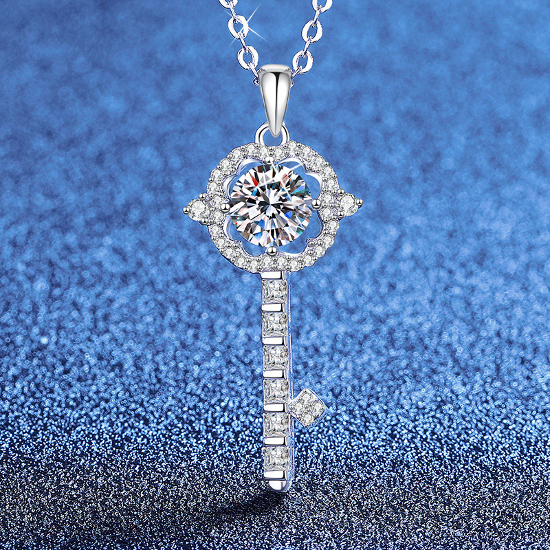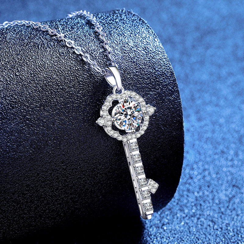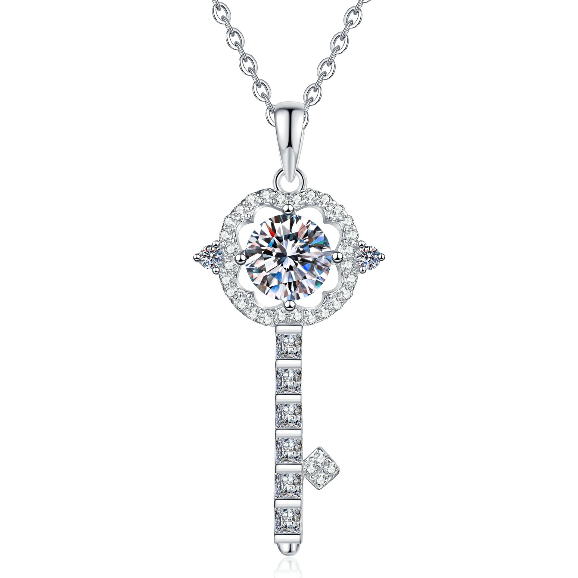 新款S925纯银项链莫桑石 轻奢暮光之钥匙吊坠1克拉莫桑石项链