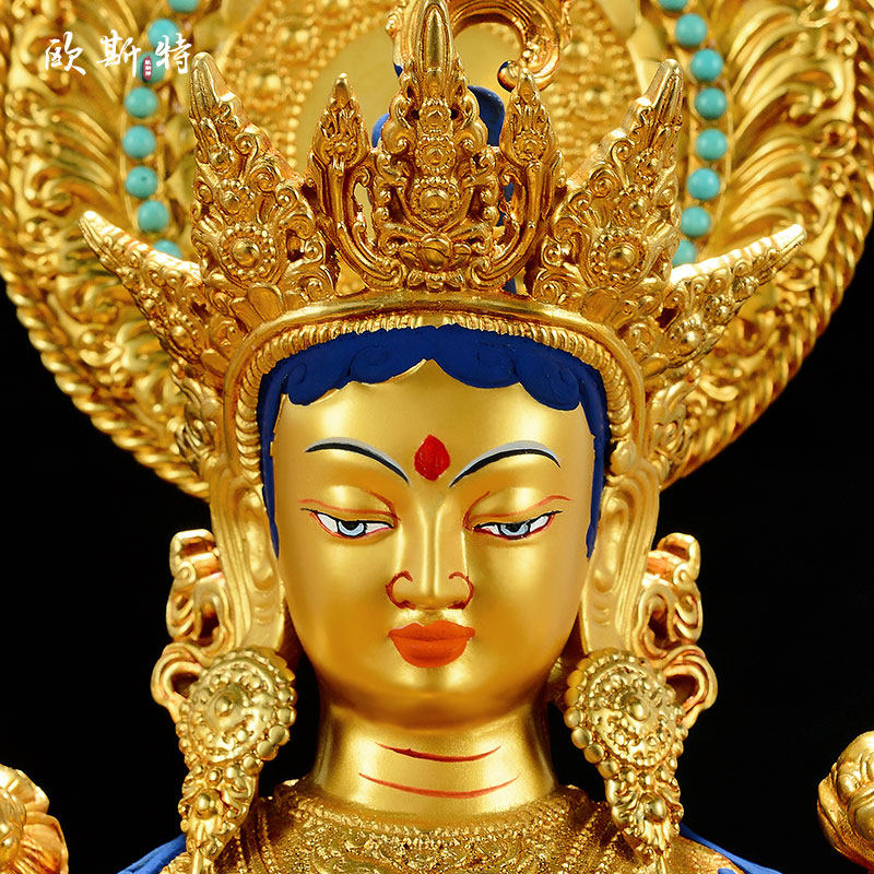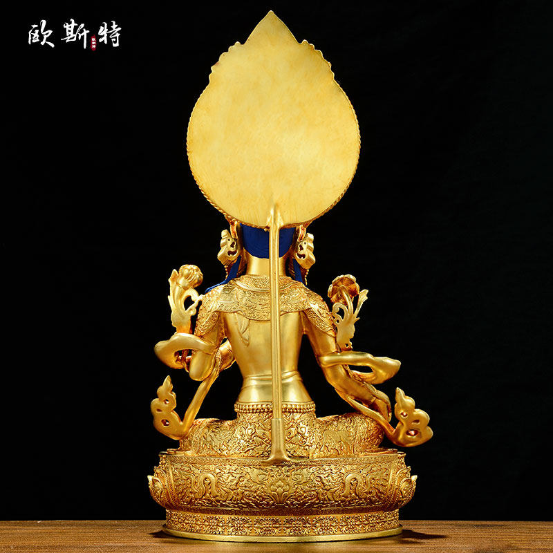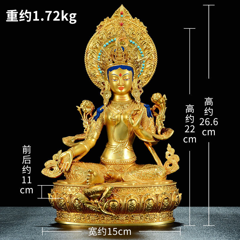 欧斯特全鎏金《绿度母》精工铜雕花家用《绿多罗菩萨》铜像摆件