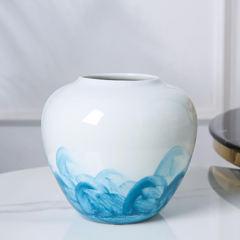 热销现代简约手绘样板房陶瓷花瓶创意家居酒店青花干花设计师装饰