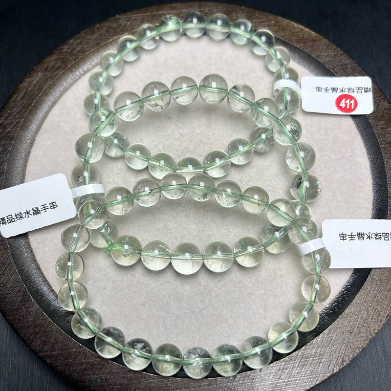 天然绿水晶手链女款单圈手链绿色水晶圆珠手串时尚饰品礼物
