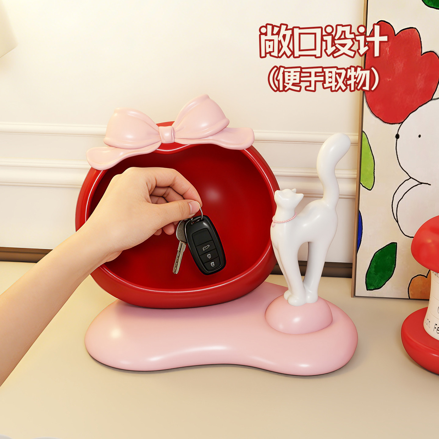 黑色优雅猫客厅入户玄关钥匙收纳摆件创意首饰收纳盒装饰品法式风