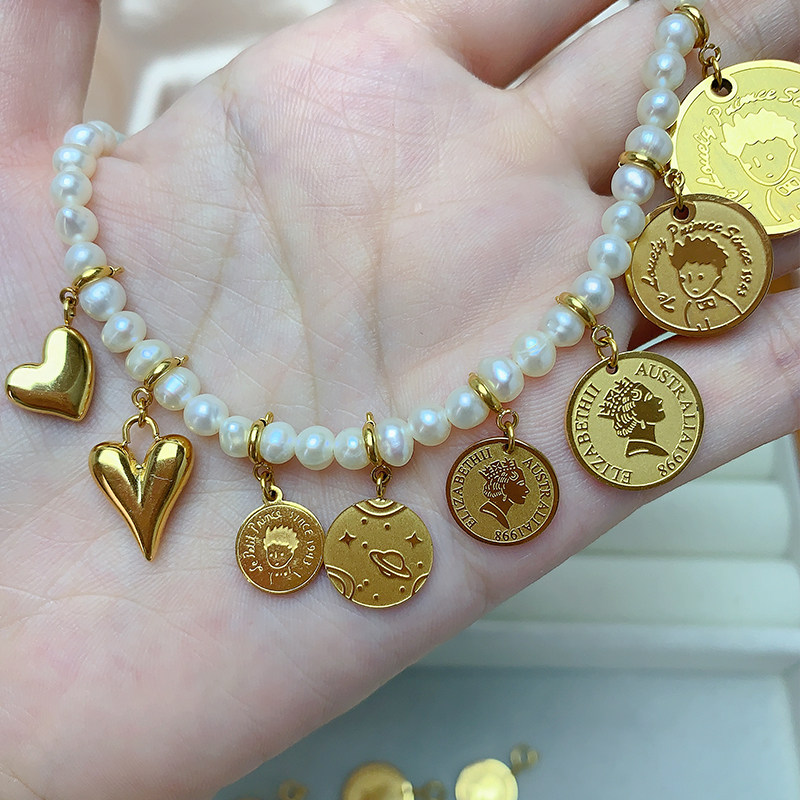 可拆卸扣头高保色钛钢吊坠弹簧扣小王子女王挂坠diy项坠珍珠配件