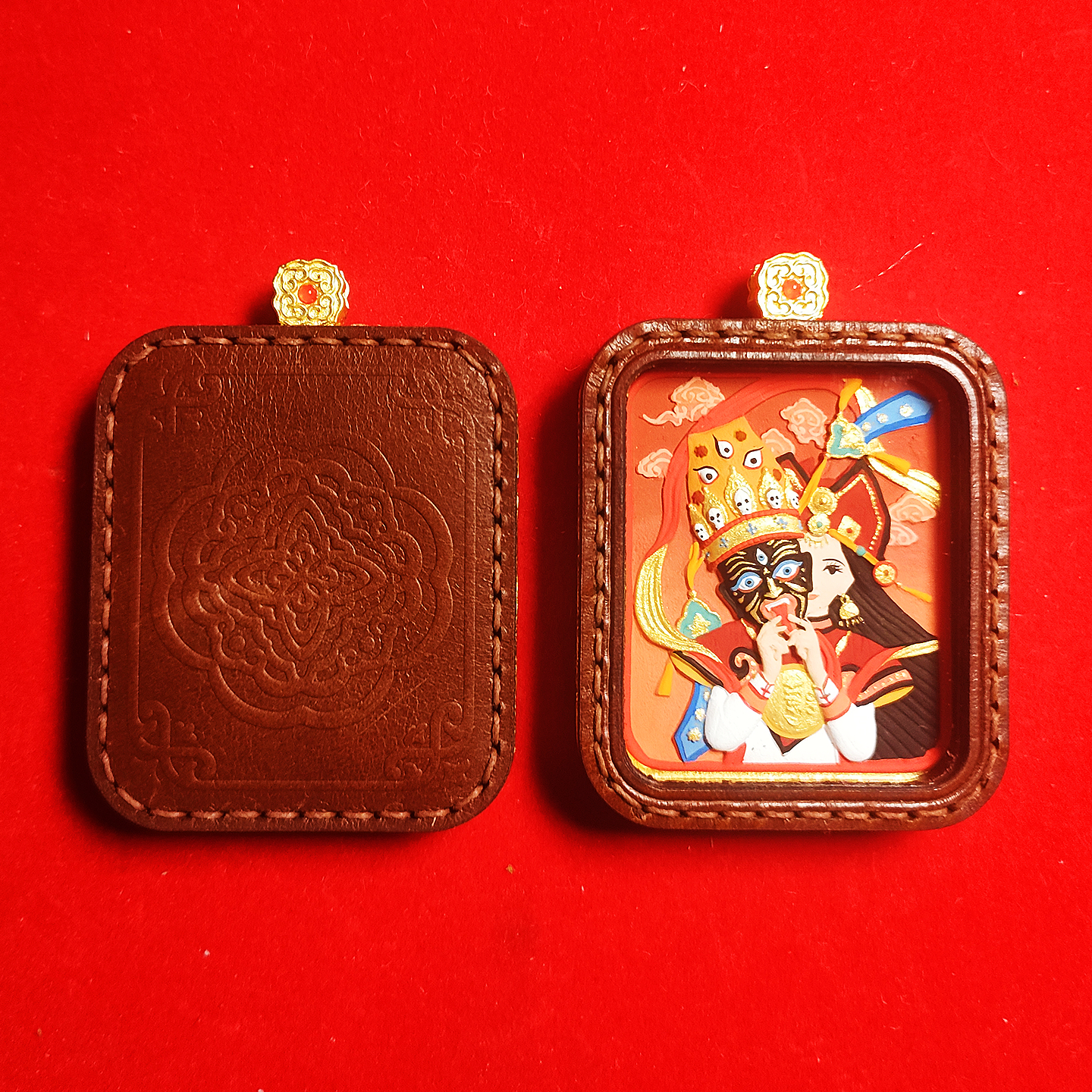 手绘擦擦唐卡挂件吊坠项链皮子文玩扎基拉姆度母财神文殊生肖本命