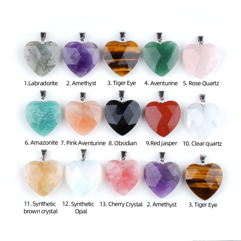 天然石水晶切面爱心吊坠虎眼紫水晶项链饰品批发DIY礼物热卖吊坠