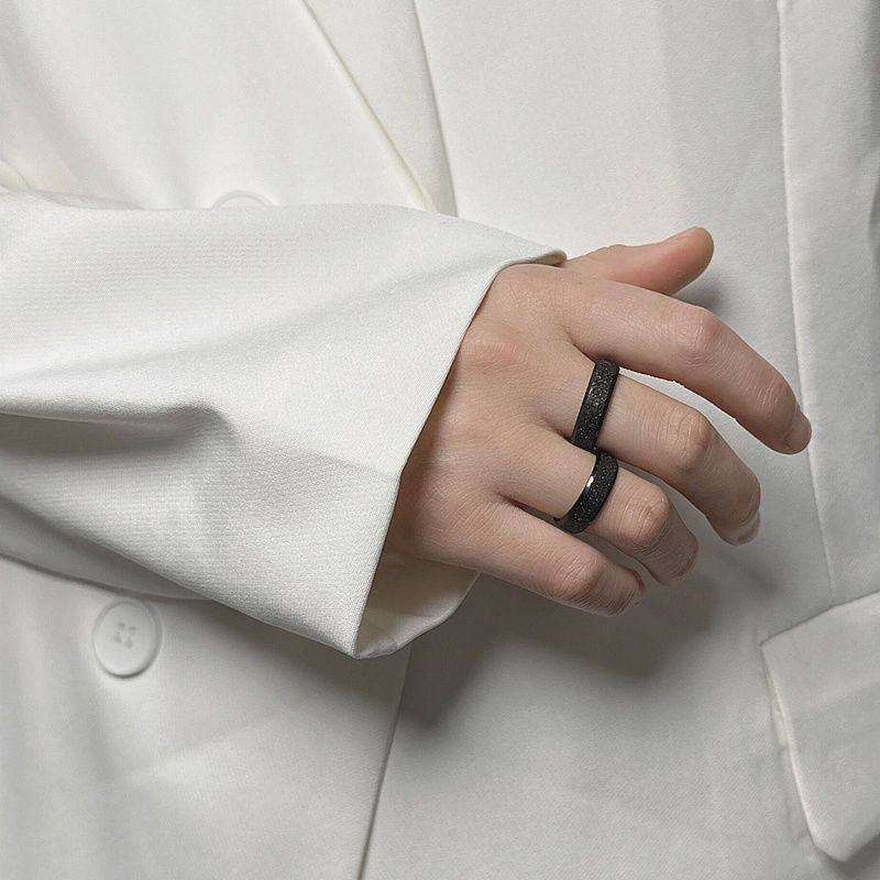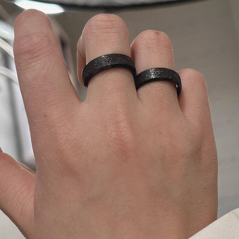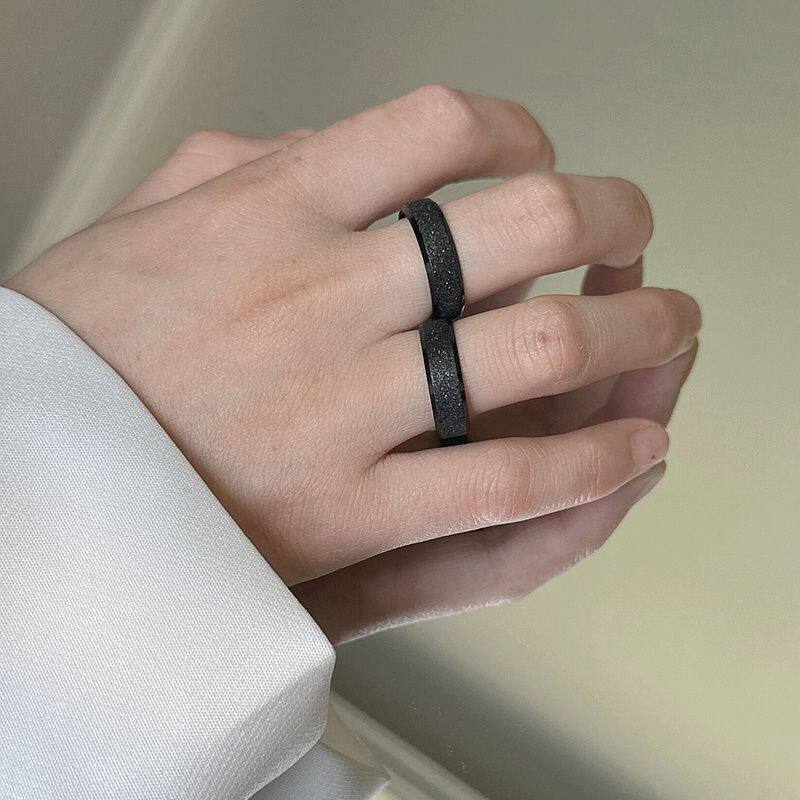 磨砂素圈黑色男士钛钢戒指男生高级感男潮牌不掉色男款潮男个性女