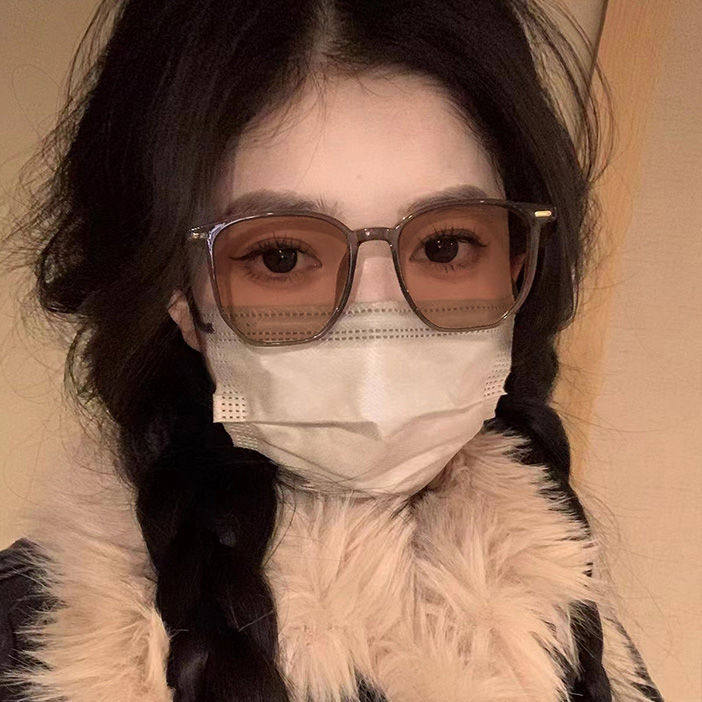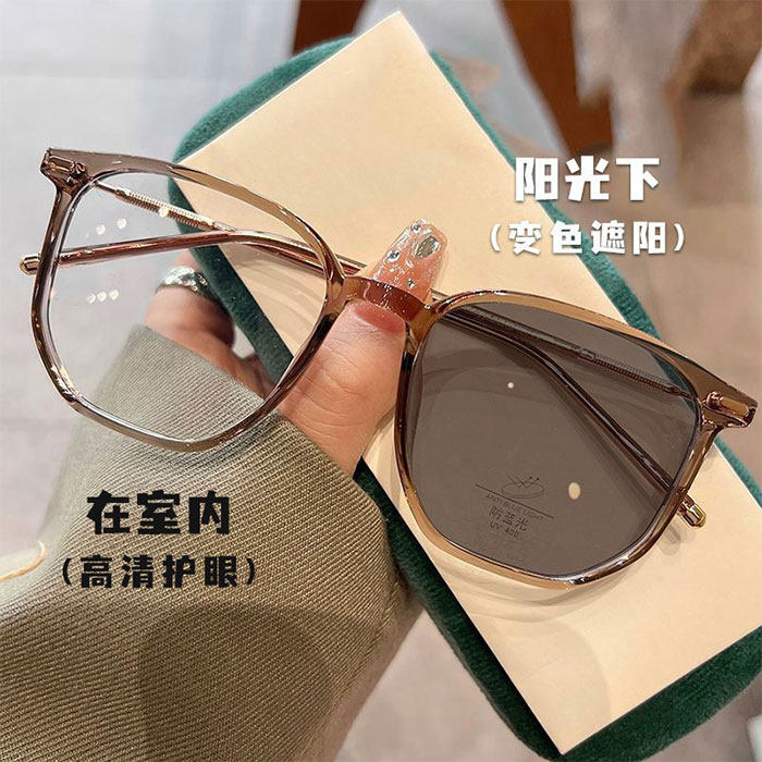 大框茶色感光变色眼镜防紫外线近视女超轻圆脸修饰显瘦开车太阳镜