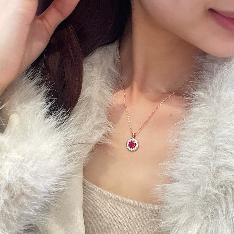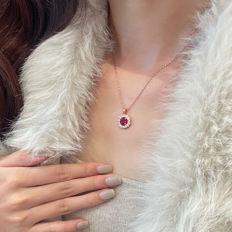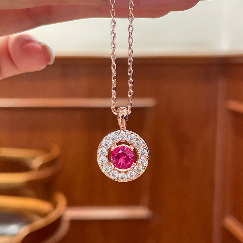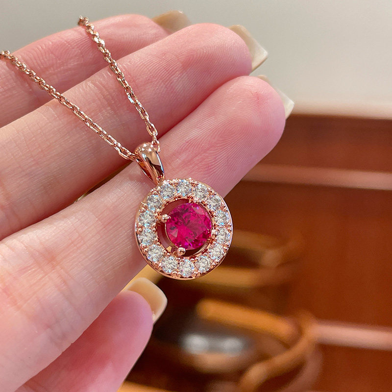 琳琯瑛红宝石项链圆形单钻玫瑰金锁骨链女轻奢高级感珠宝送礼物