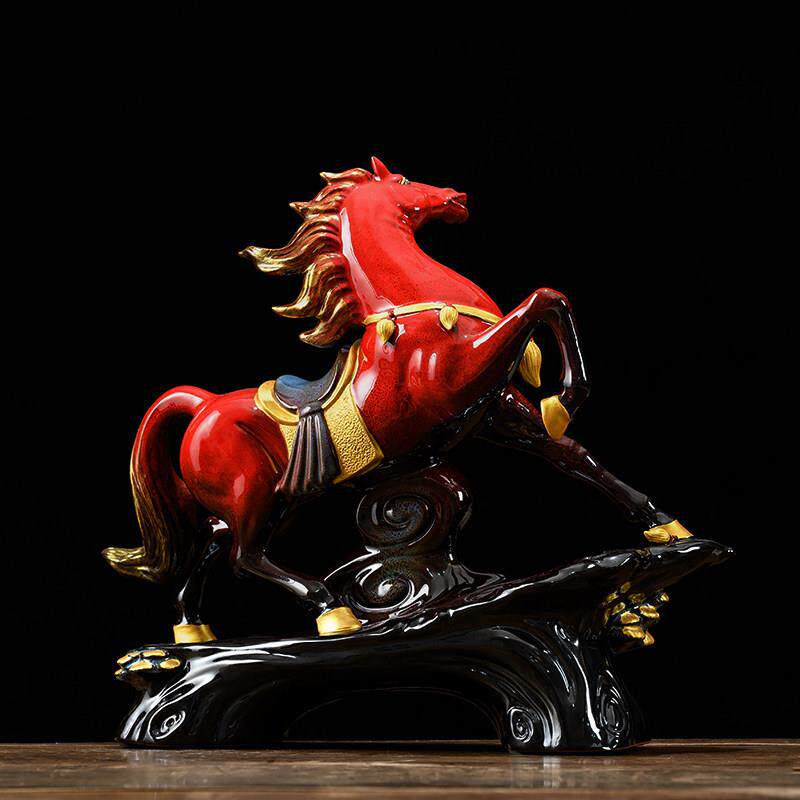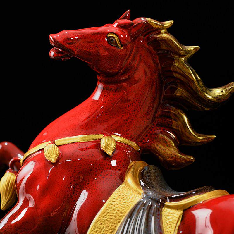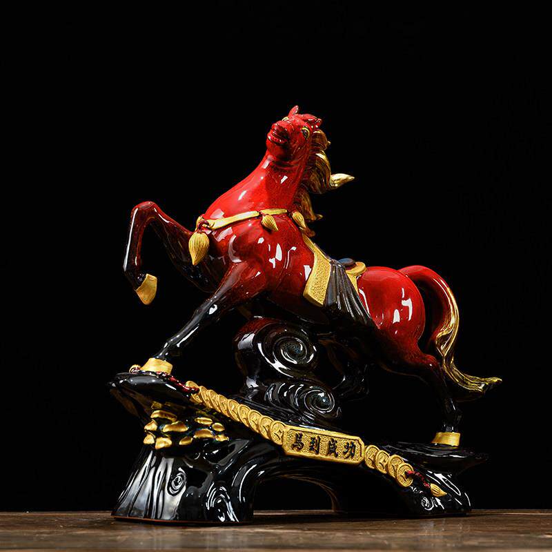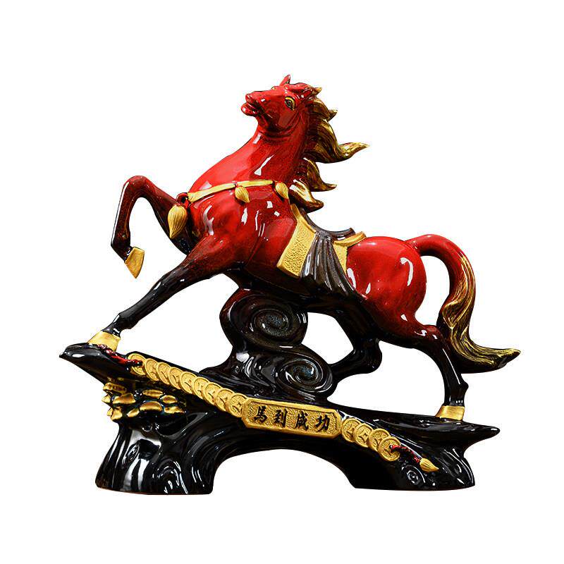 陶瓷马到成功马摆件招财马客厅电视柜办公室酒柜装饰品红色马礼品