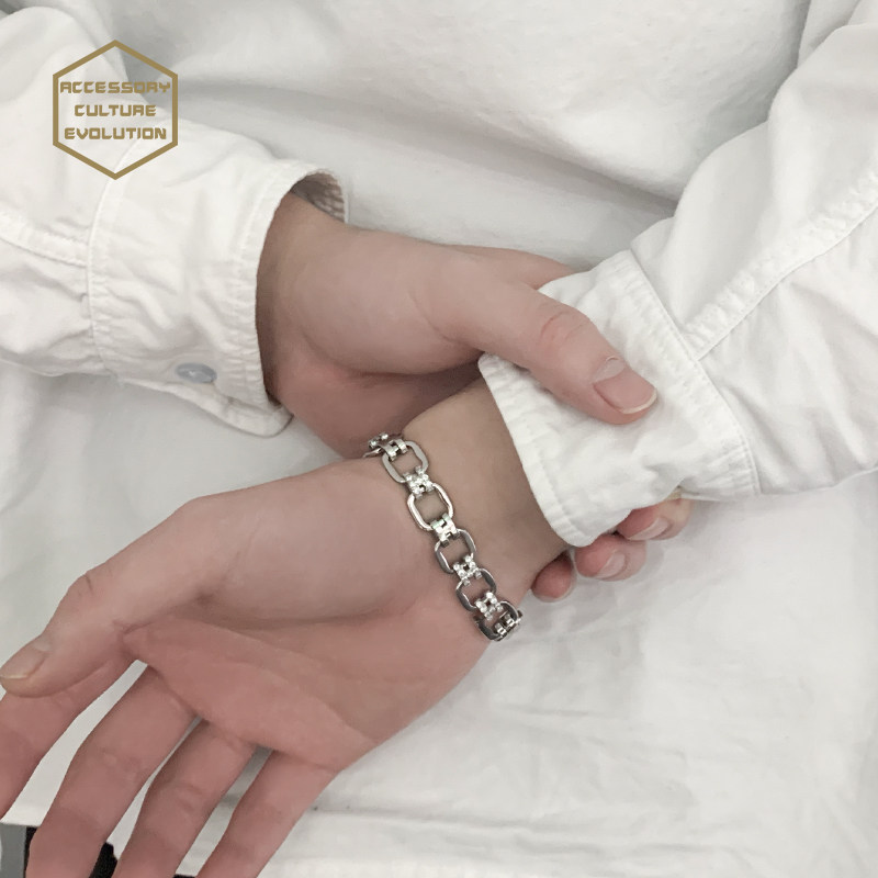 埃斯意 ChooSe锆石连环锁扣手链双排古巴链ins潮个性轻奢手环男女