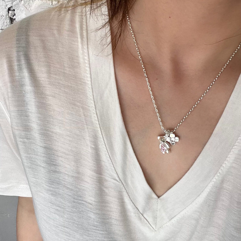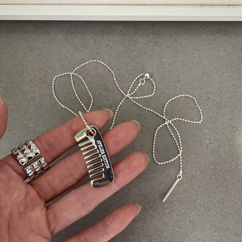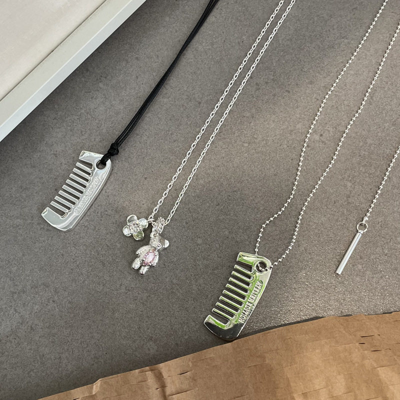 韩国博主同款小熊项链少女多巴胺小众粉色时尚锁骨链小梳子毛衣链