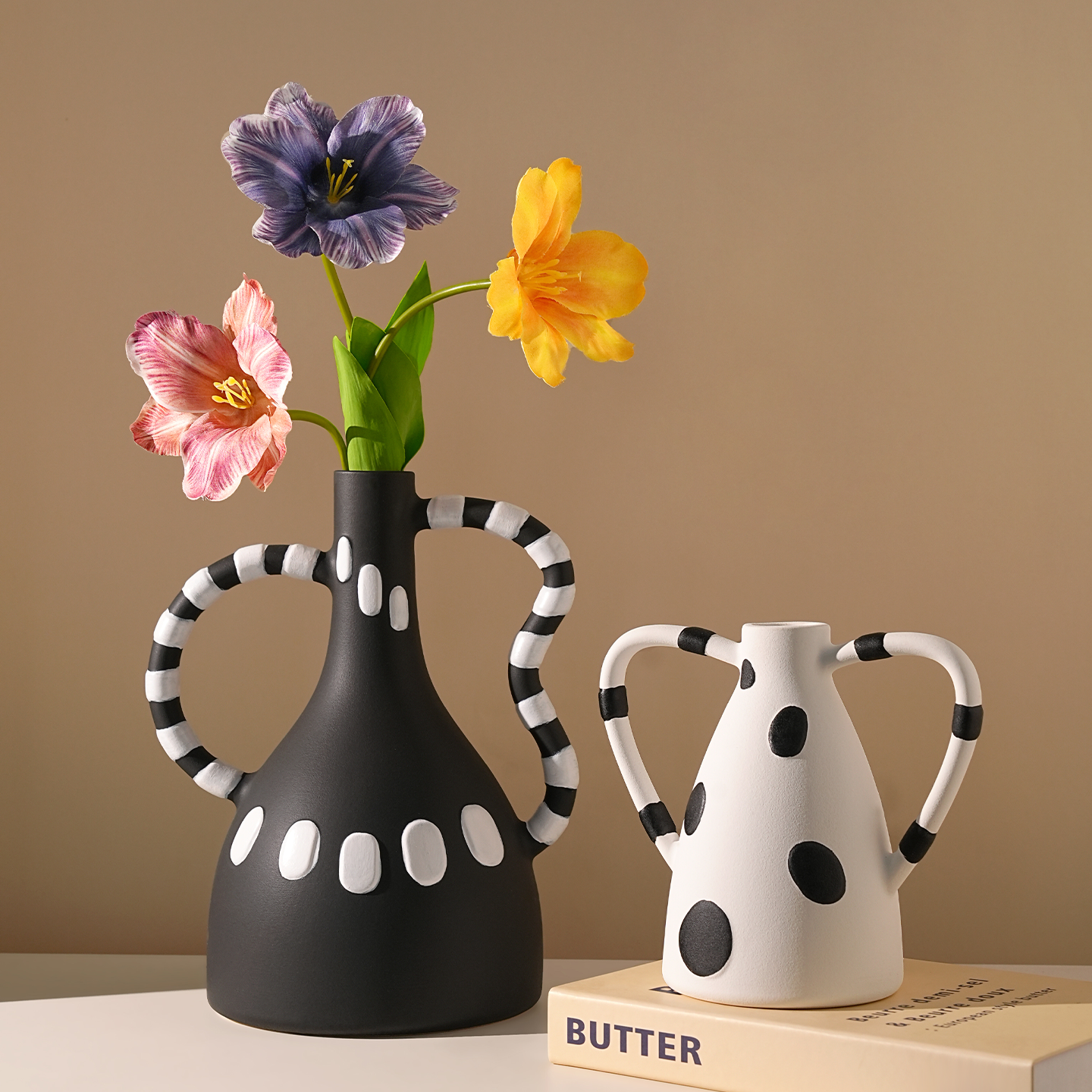 现代简约几何黑白斑点花瓶摆件轻奢高档电视柜玄关酒柜家居装饰品