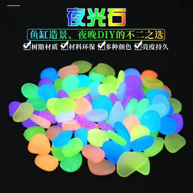 水族箱鱼缸水晶石造景底沙蓝色发光装饰磨砂石子夜光石头夜明荧光