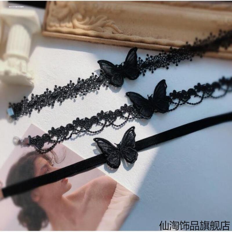 黑色颈带山茶花系带蝴蝶结Choker锁骨链项链仙女风配饰夏季新款潮