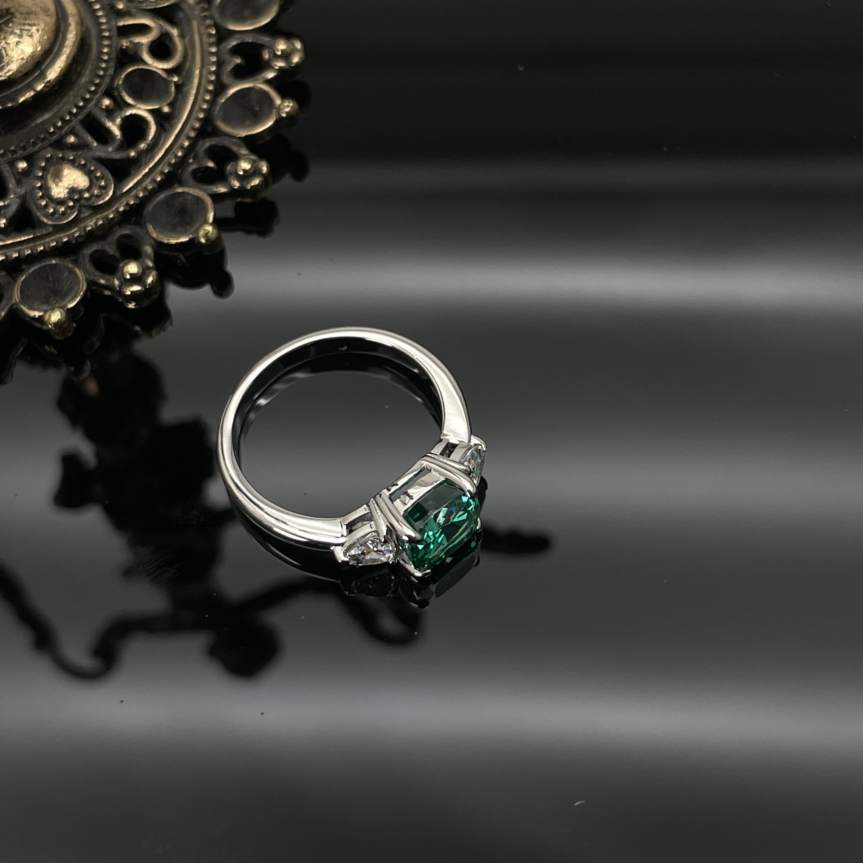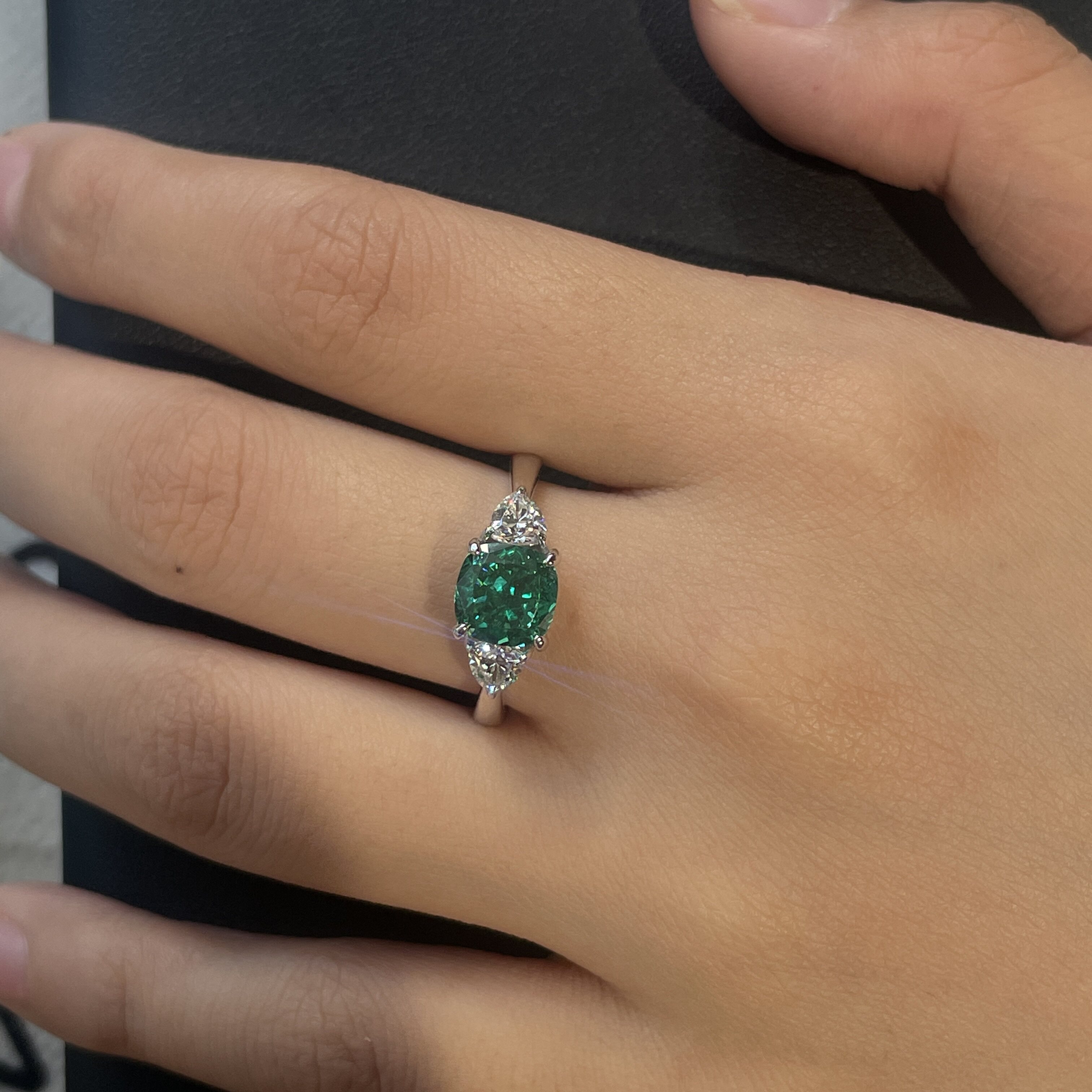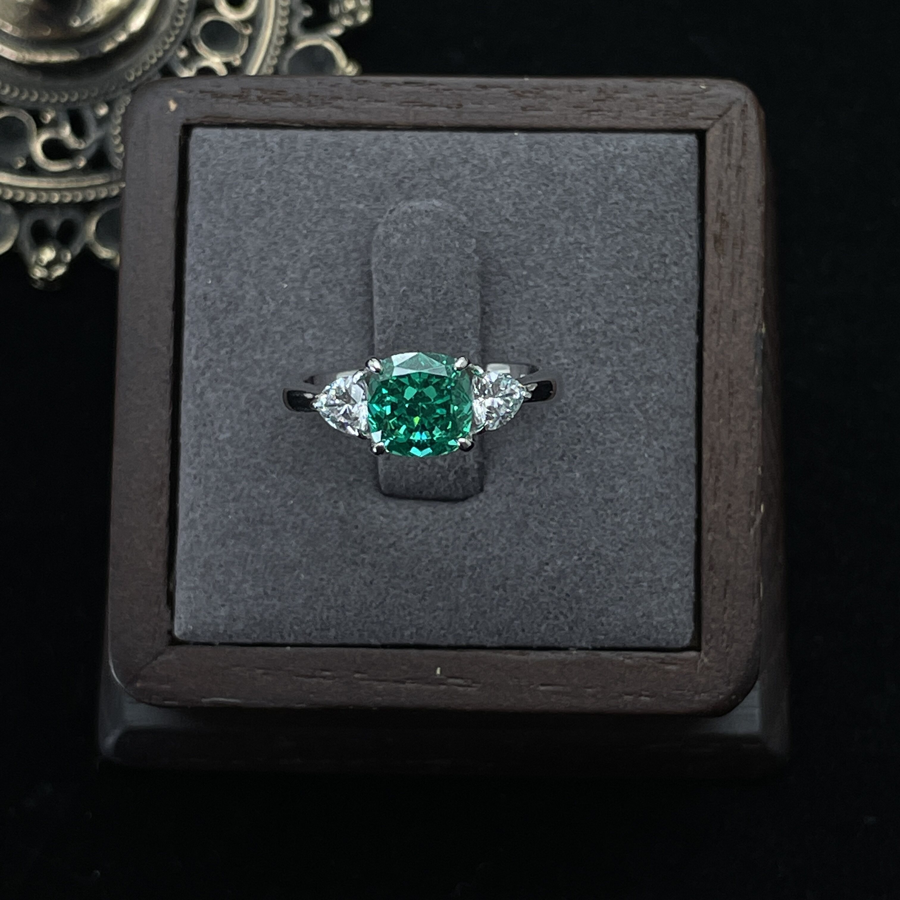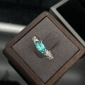 2克拉帕拉伊巴纯银925戒指镶嵌冰花切人工培育绿钻三石款时尚钻戒