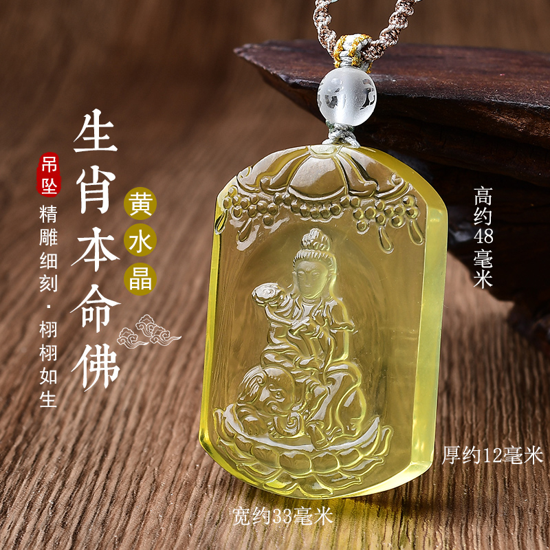 天然黄水晶项链护身符挂件不动明王菩萨属鸡本命佛生肖守护神吊坠