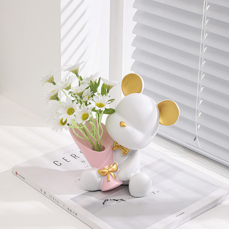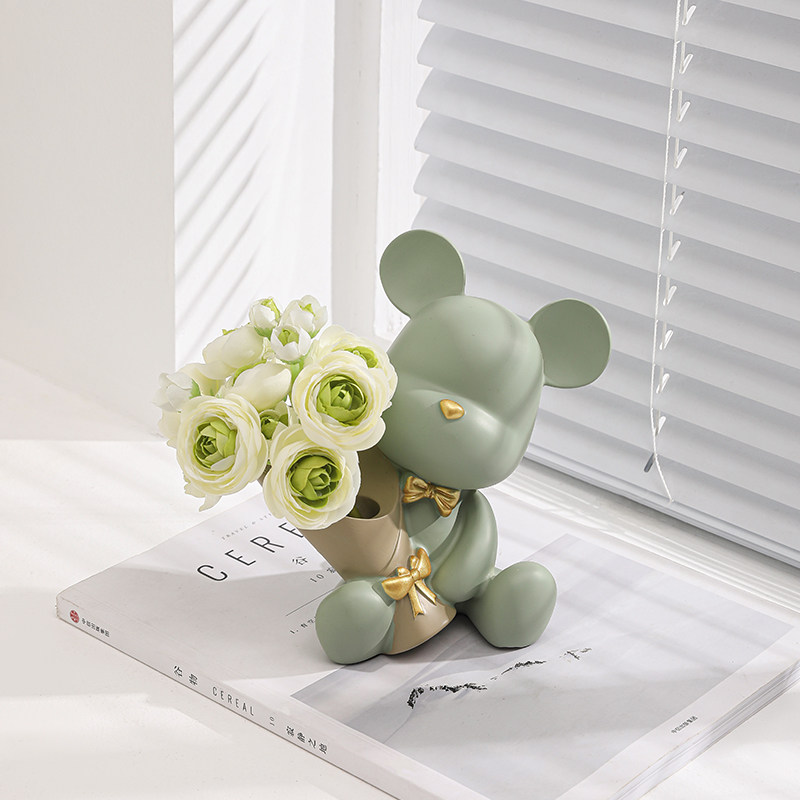 速发熊捧花摆件玄关客厅家居电视酒柜柜餐桌面装饰品乔迁新居礼品