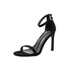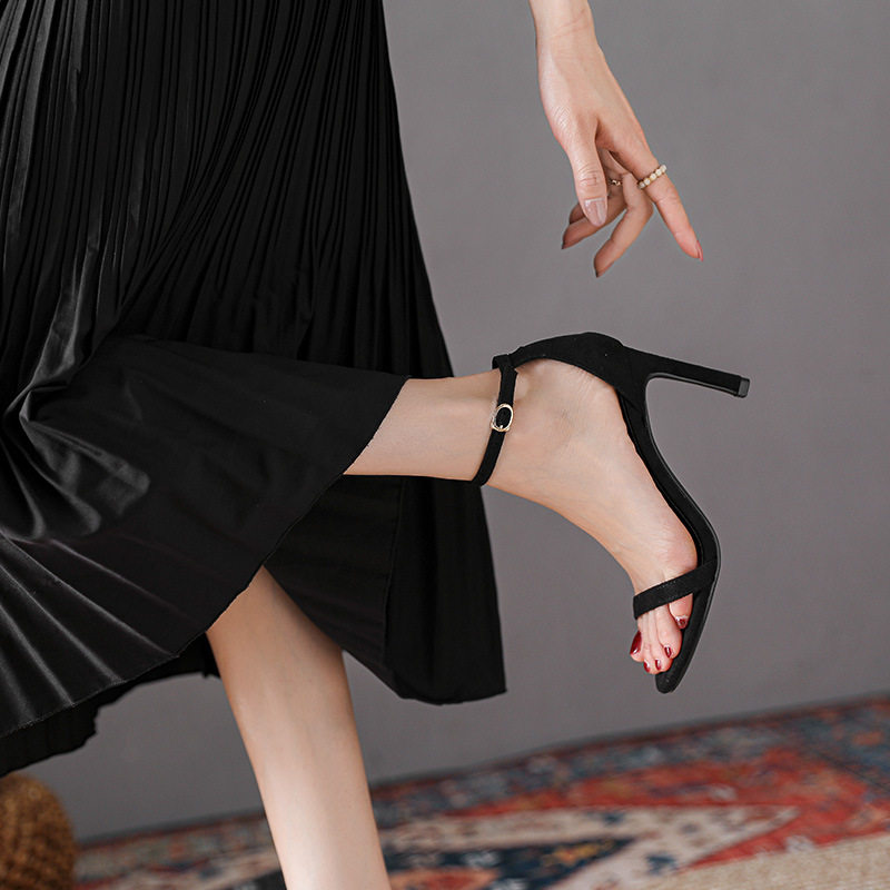 凉鞋女2024年一字带扣高跟鞋细跟黑色仙女风时装流行鞋子细高跟
