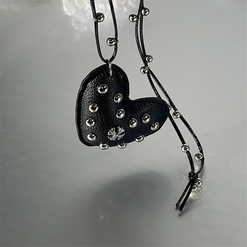暗黑辣妹风y2k个性长款皮质桃心圆珠项链女小众时尚设计感毛衣链
