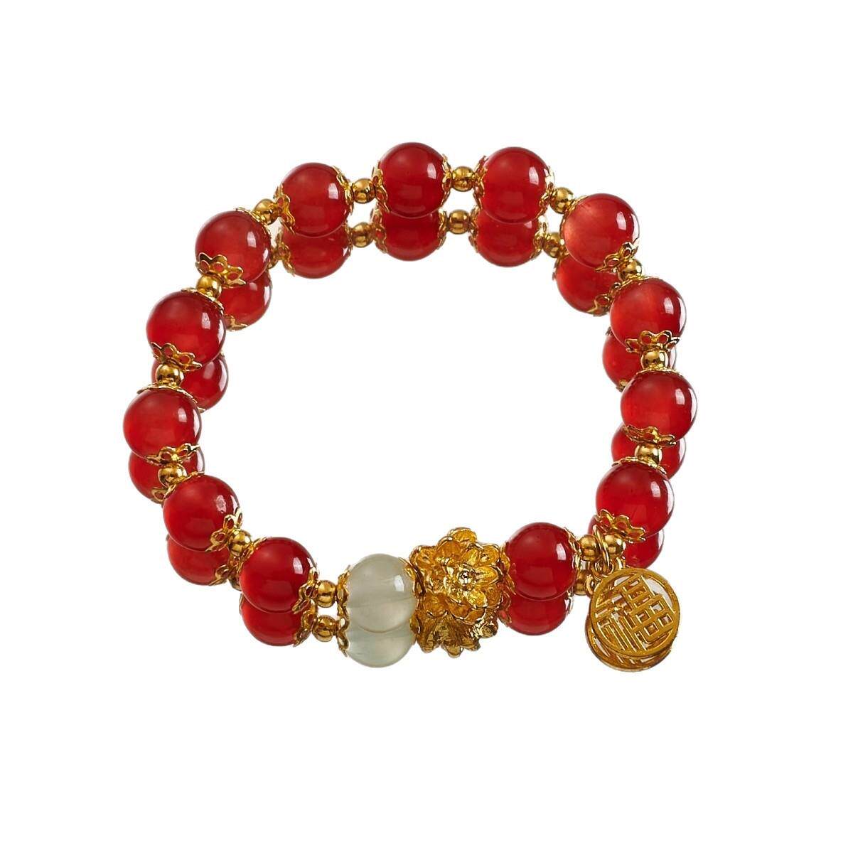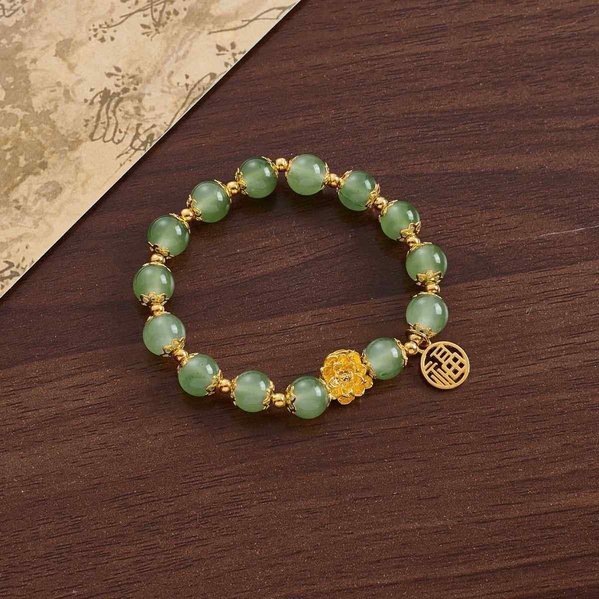送妈妈手工莲花手链新款中式文艺百搭复古简约森系手串绿色