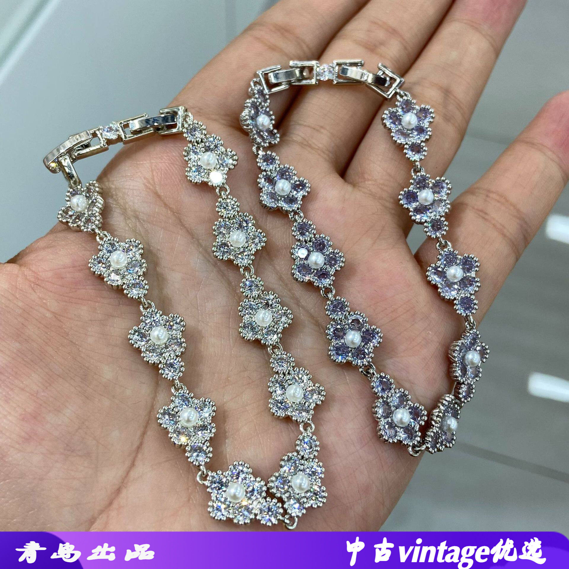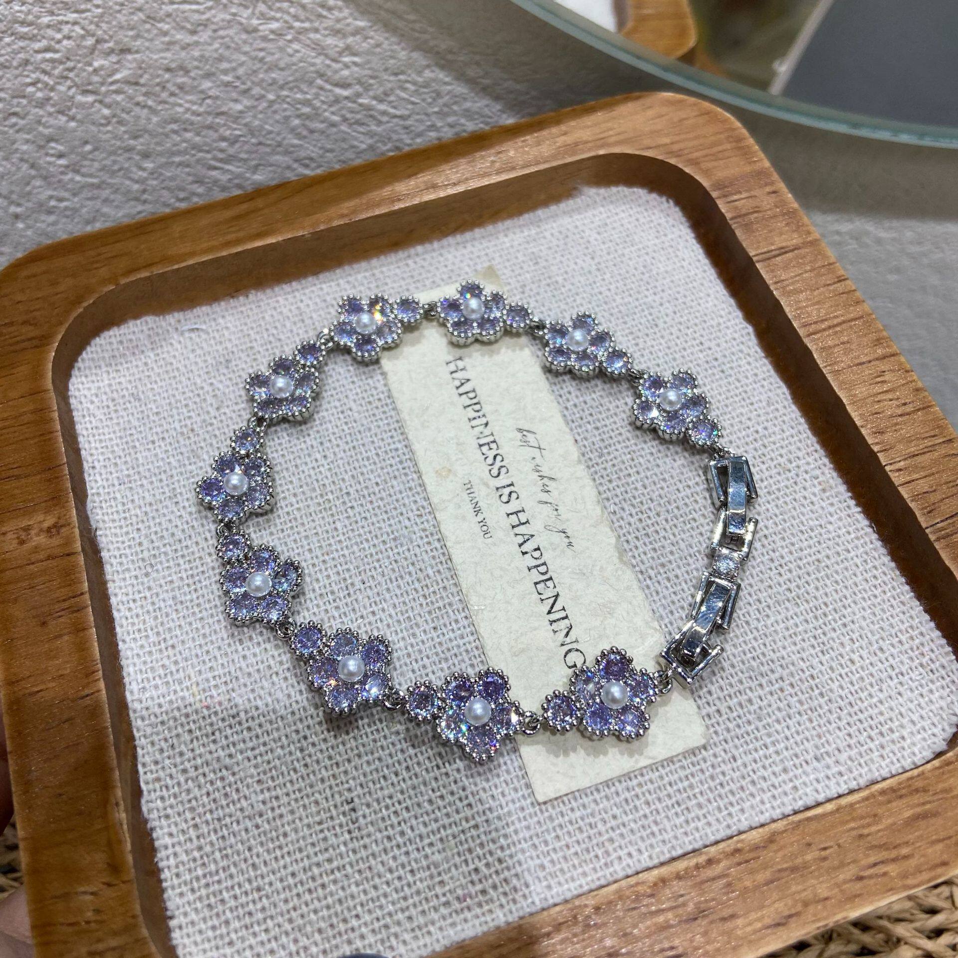 ins爆款跨境新品珠宝款花卉手链白色轻奢花朵设计高级感手环女