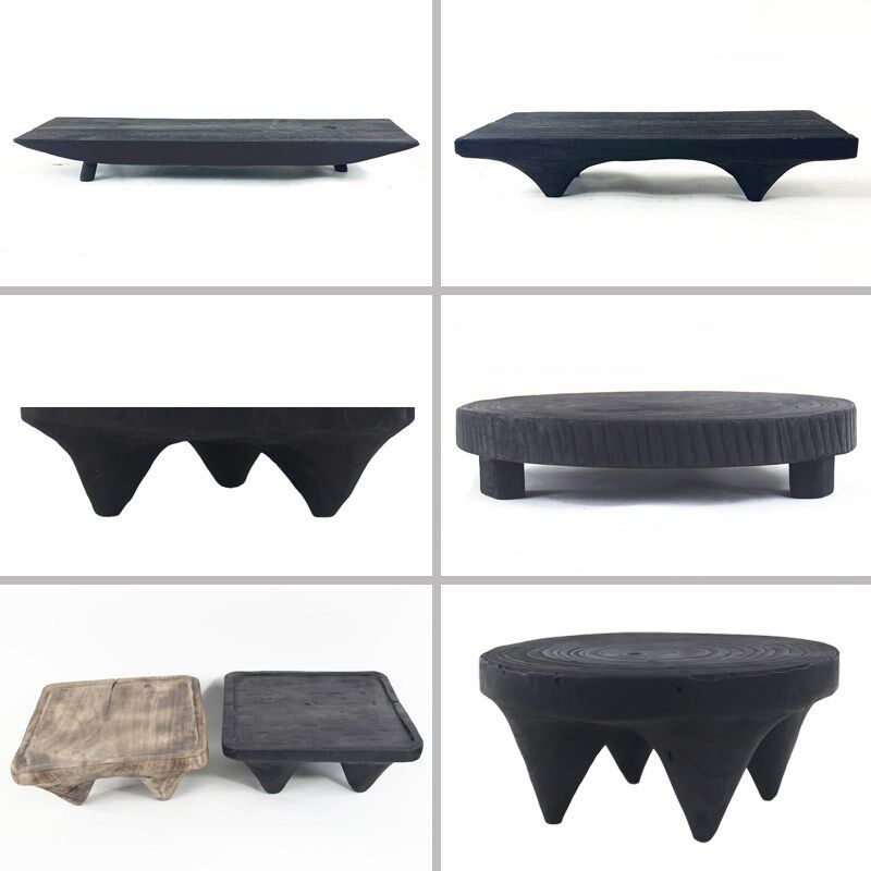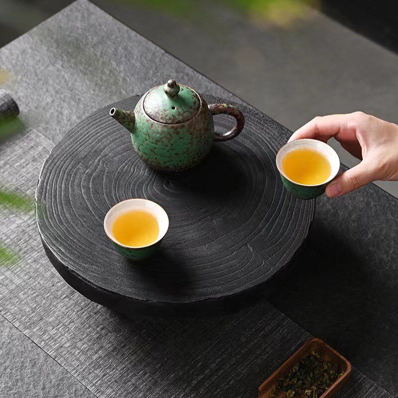 新中式侘寂风f黑色碳化木质手工托盘茶盘摆件桌面装饰茶几茶台摆