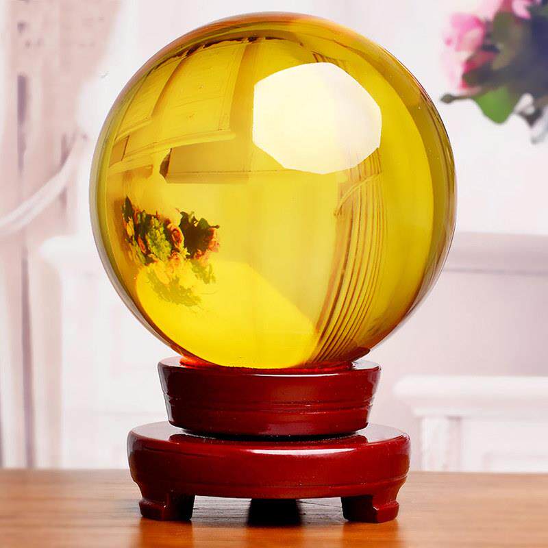 黄色水晶球摆件白蓝色球玻璃客厅店铺办公室玄关家居装饰工艺礼品