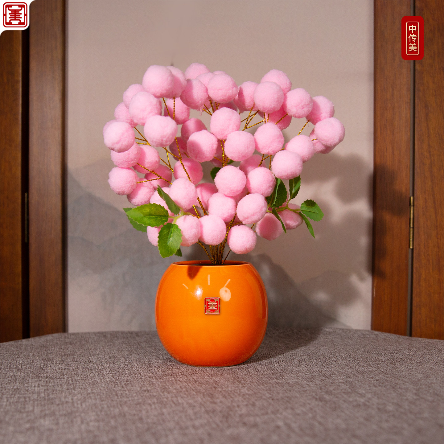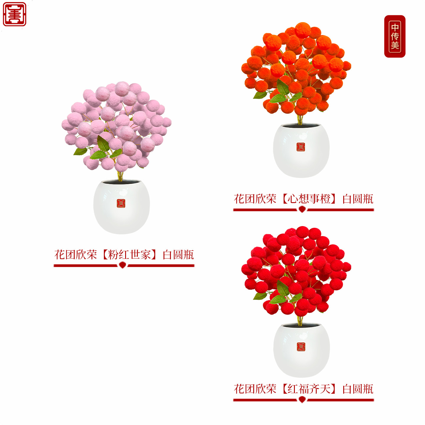 马年新中式毛绒花束摆件过年祝福装饰品客厅桌面布置店铺春节摆设