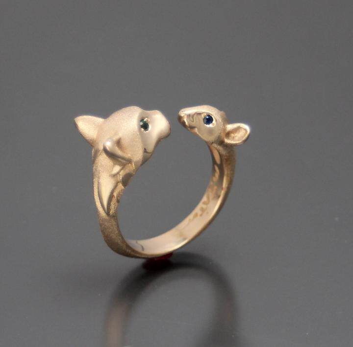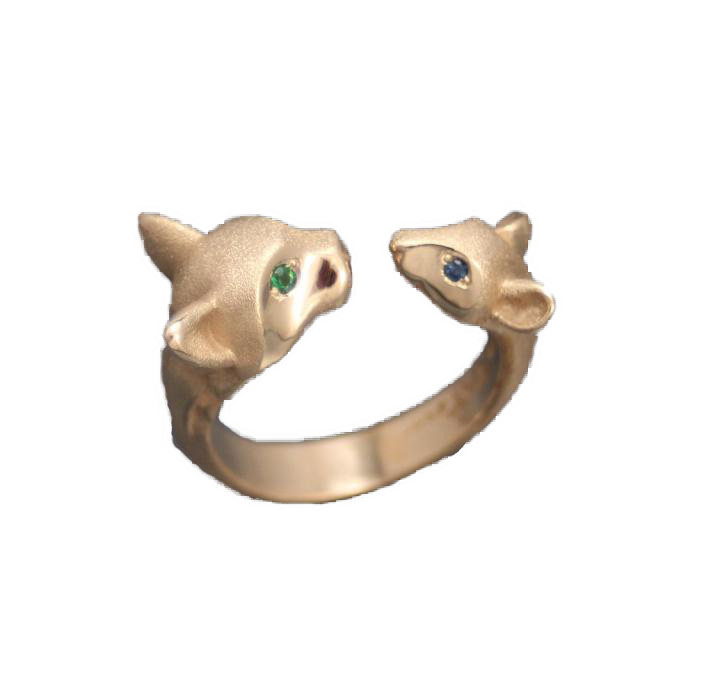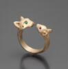 美国代购Friends◇手作复古可爱猫和老鼠绿色石榴石蓝色宝石戒指
