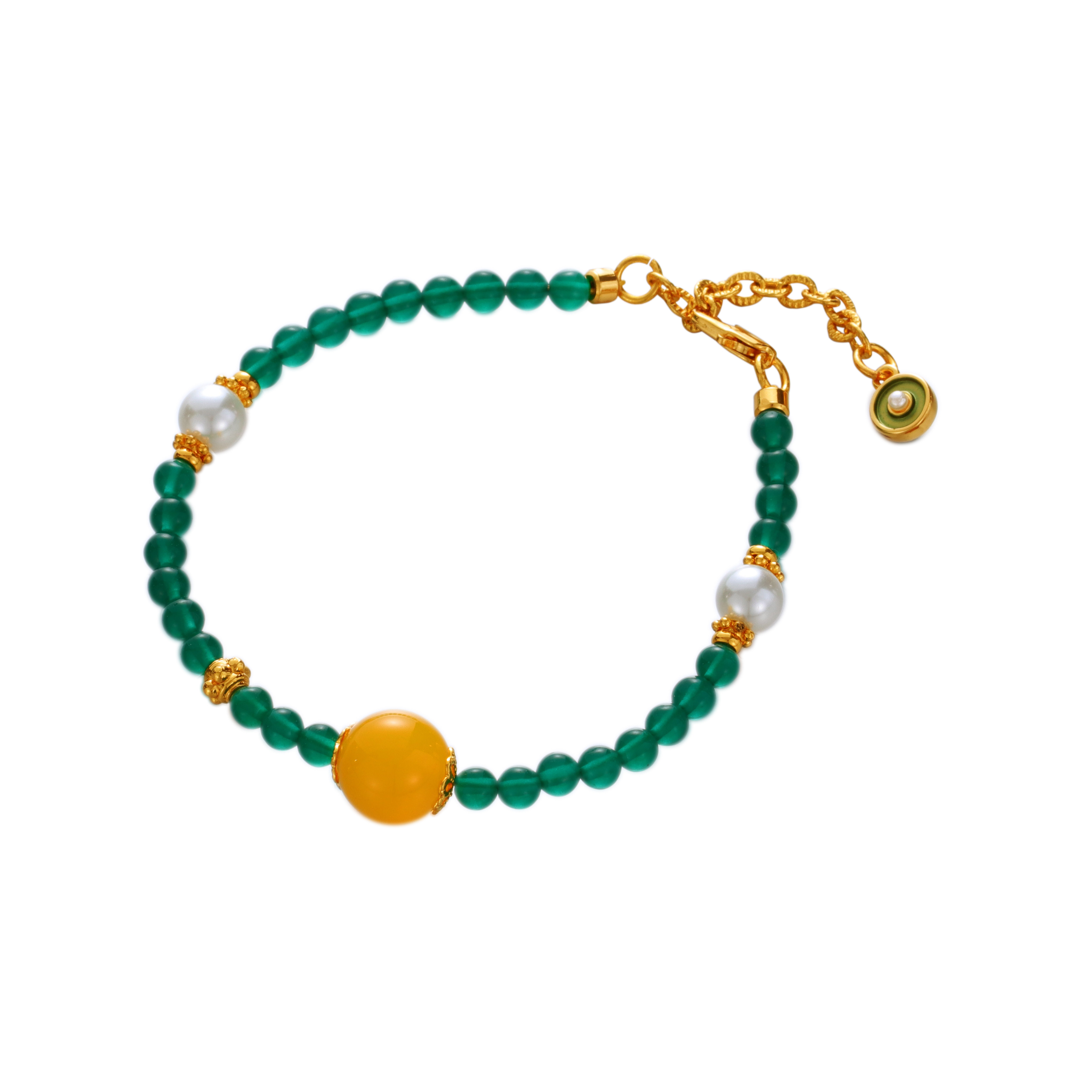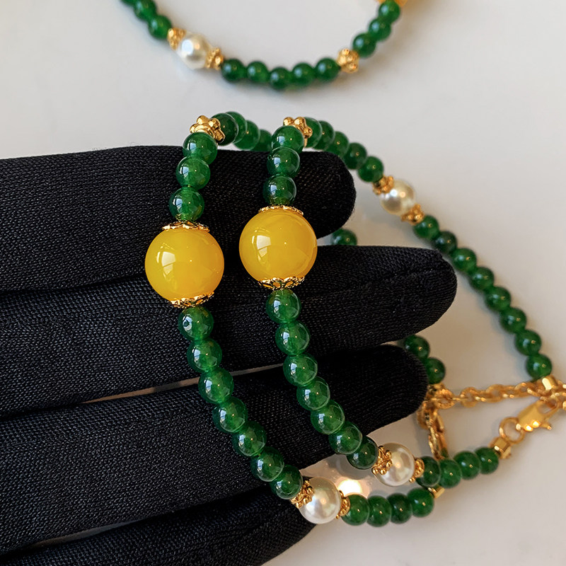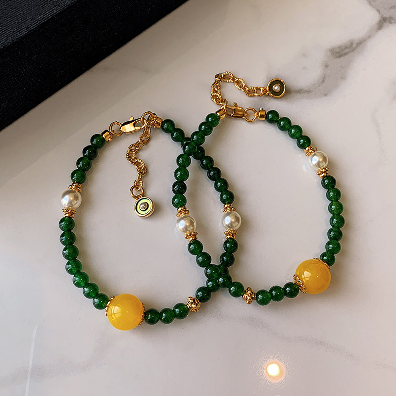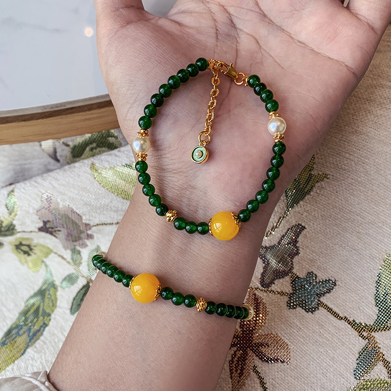 新中式天然绿玉髓黄色玛瑙串珠手链女珍珠轻奢小众精致手串手饰品
