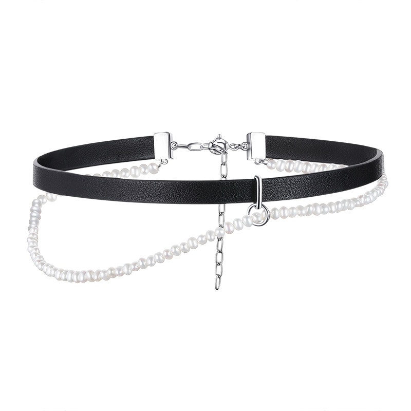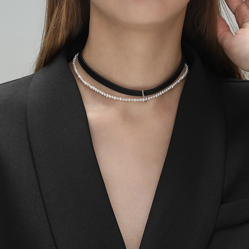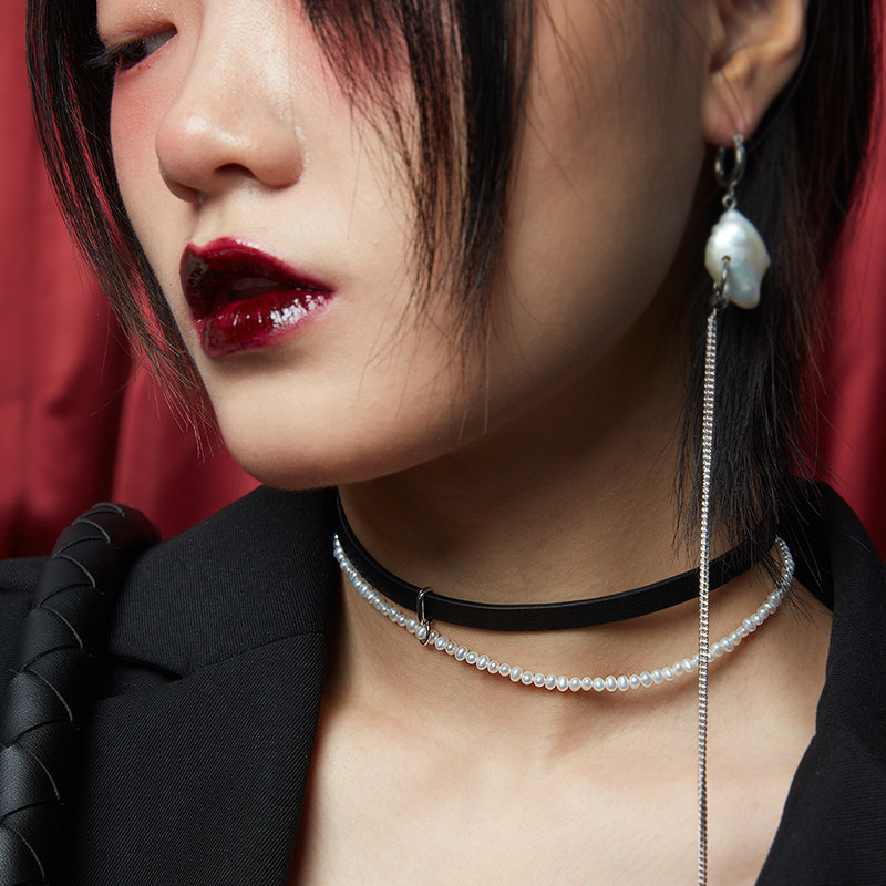 刘冠佑同款硬糖原创首饰纯银珍珠项链真皮choker颈饰项圈女颈带