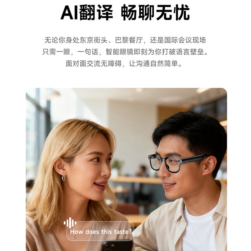 AI智能翻译眼镜拍照带摄像头大模型聊天蓝牙通话听歌万物识别跨境