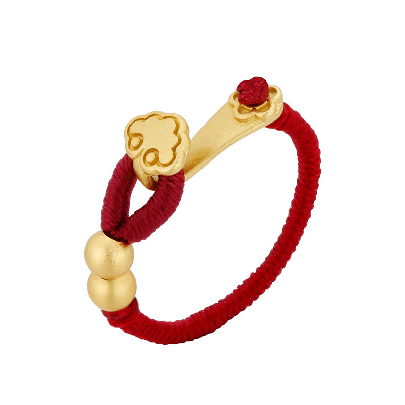 本命年红色物品手饰新款如意编绳戒指金色复古新中式古风红绳指环