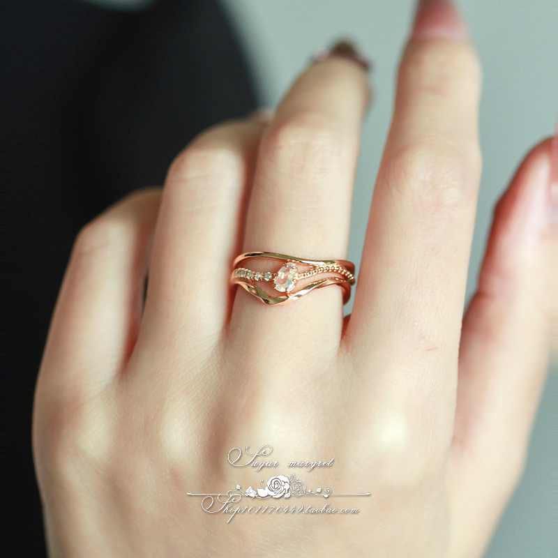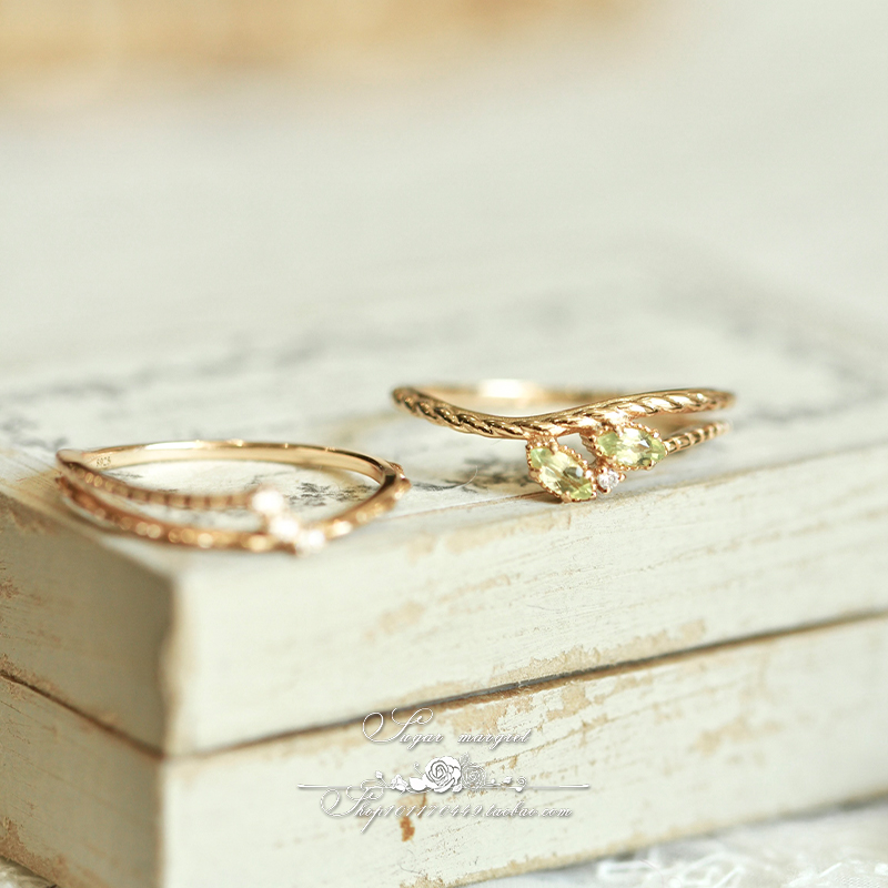 Wellen.海浪乐谱 日系同款个性精致天然橄榄石/月光石925纯银戒指