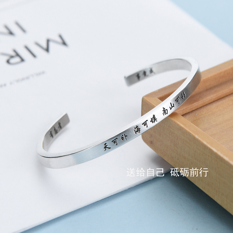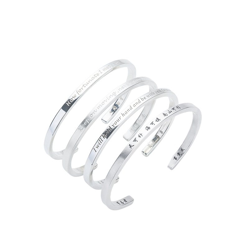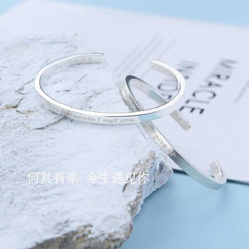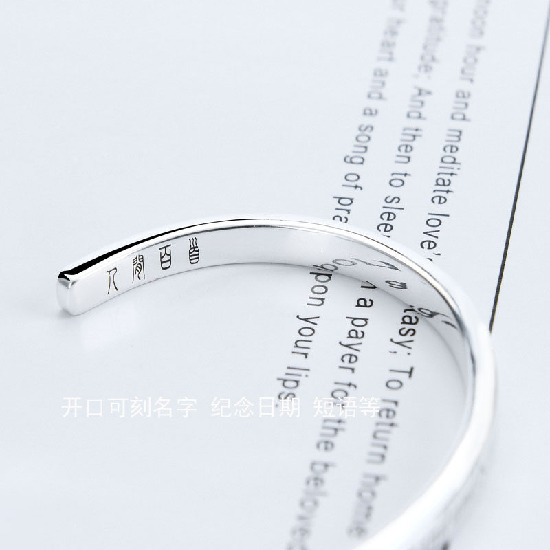定制刻字999纯银情侣手镯送男女朋友生日礼物闺蜜学生简约DIY手环