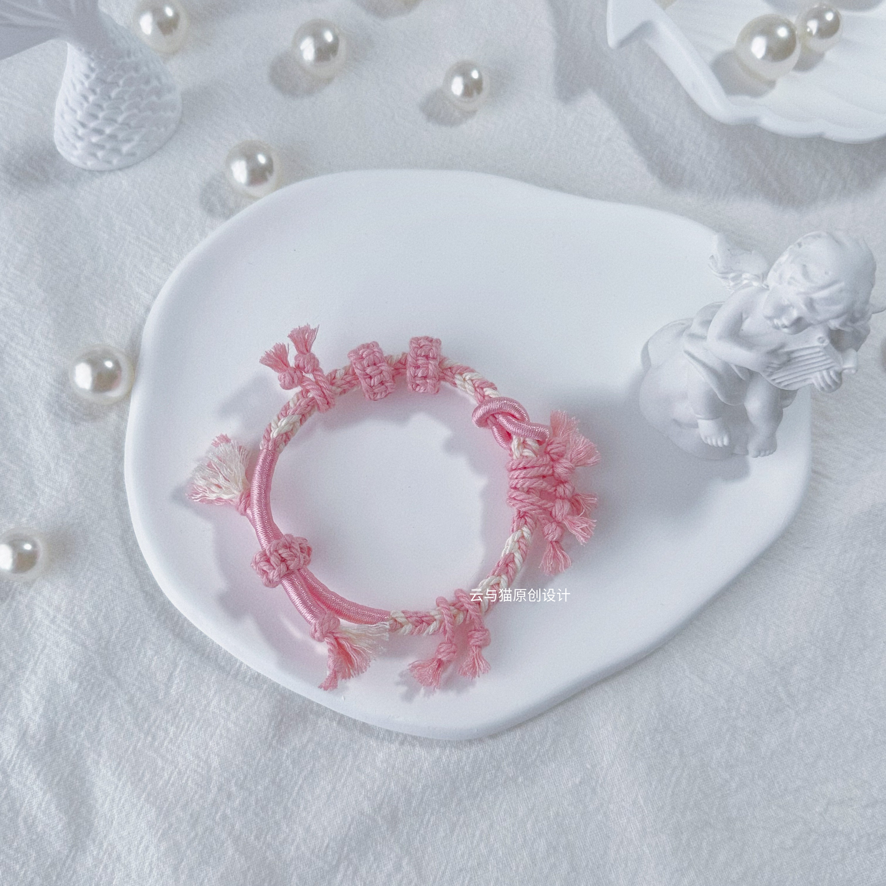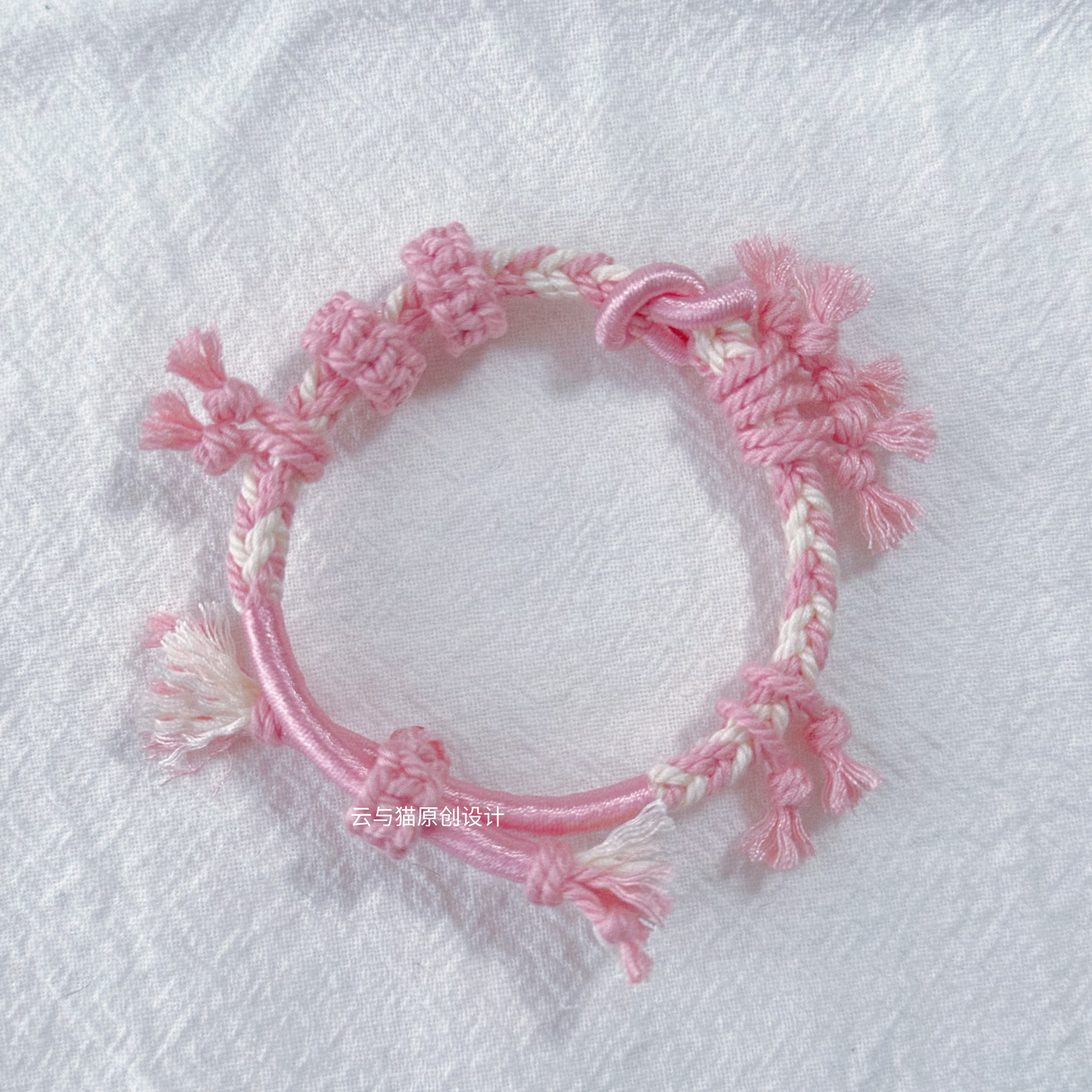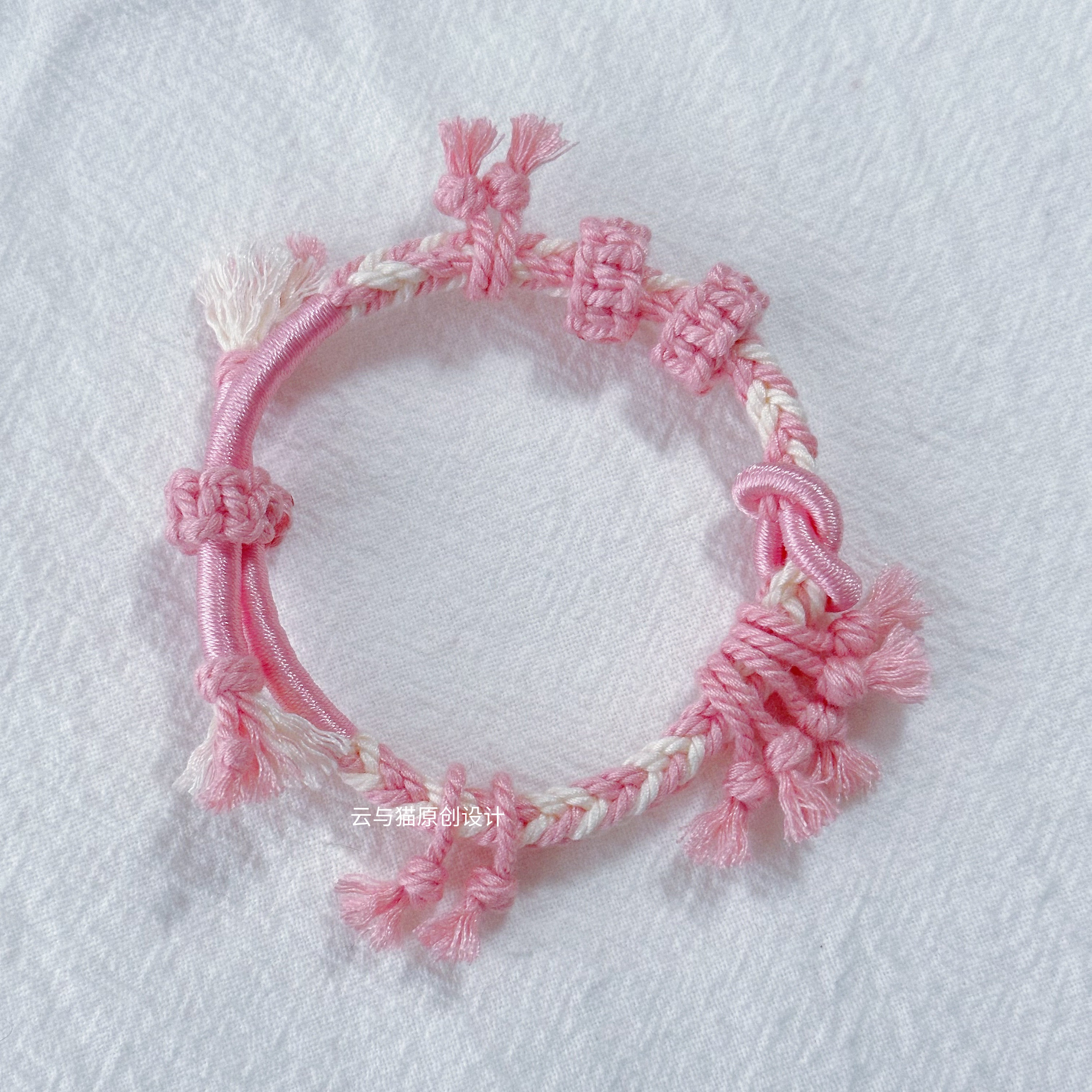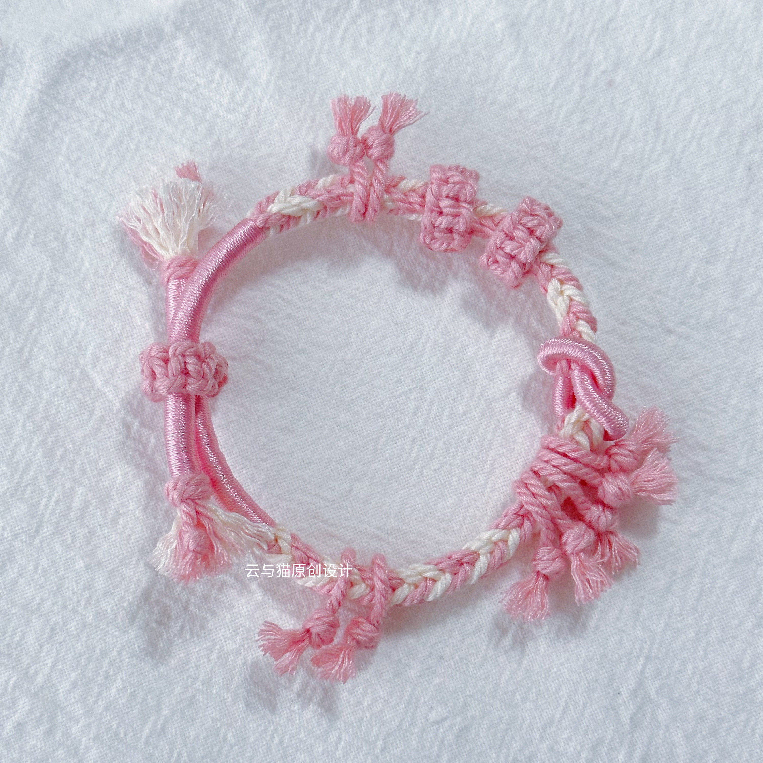 藏式编织手绳纯手工编织原创设计手链饰品穿搭搭配撞色粉白色