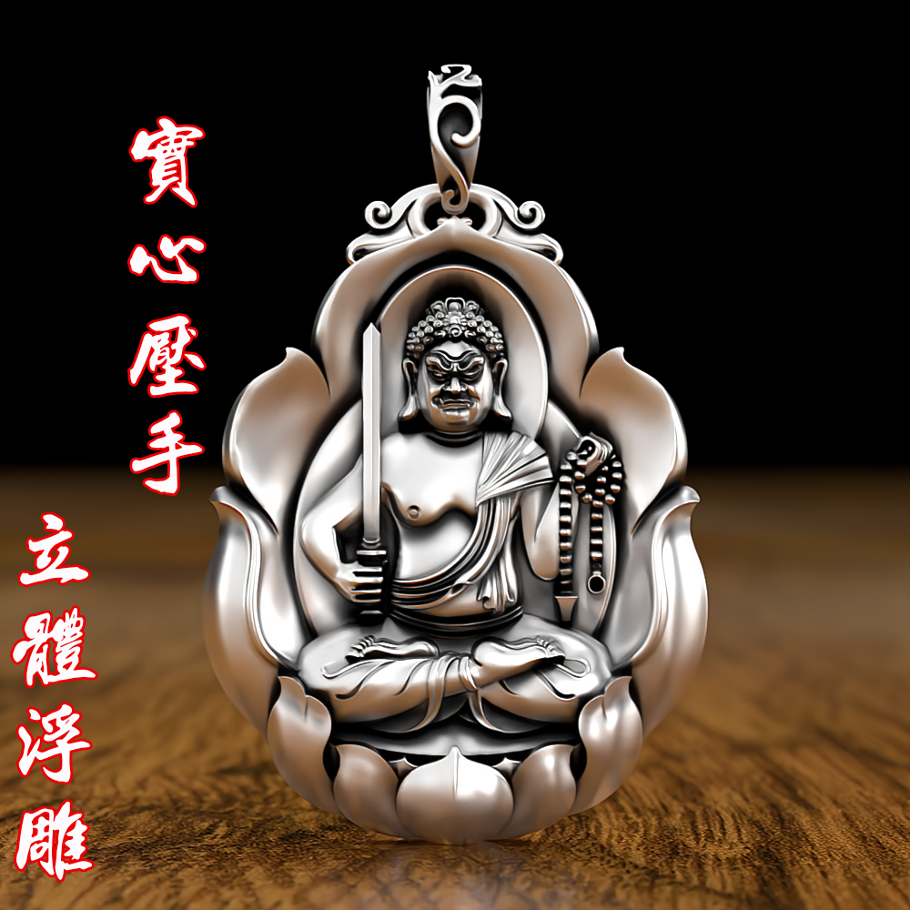 实心纯银千手属鼠吊坠男女文殊普贤项链足银牌本命佛银牌守护神