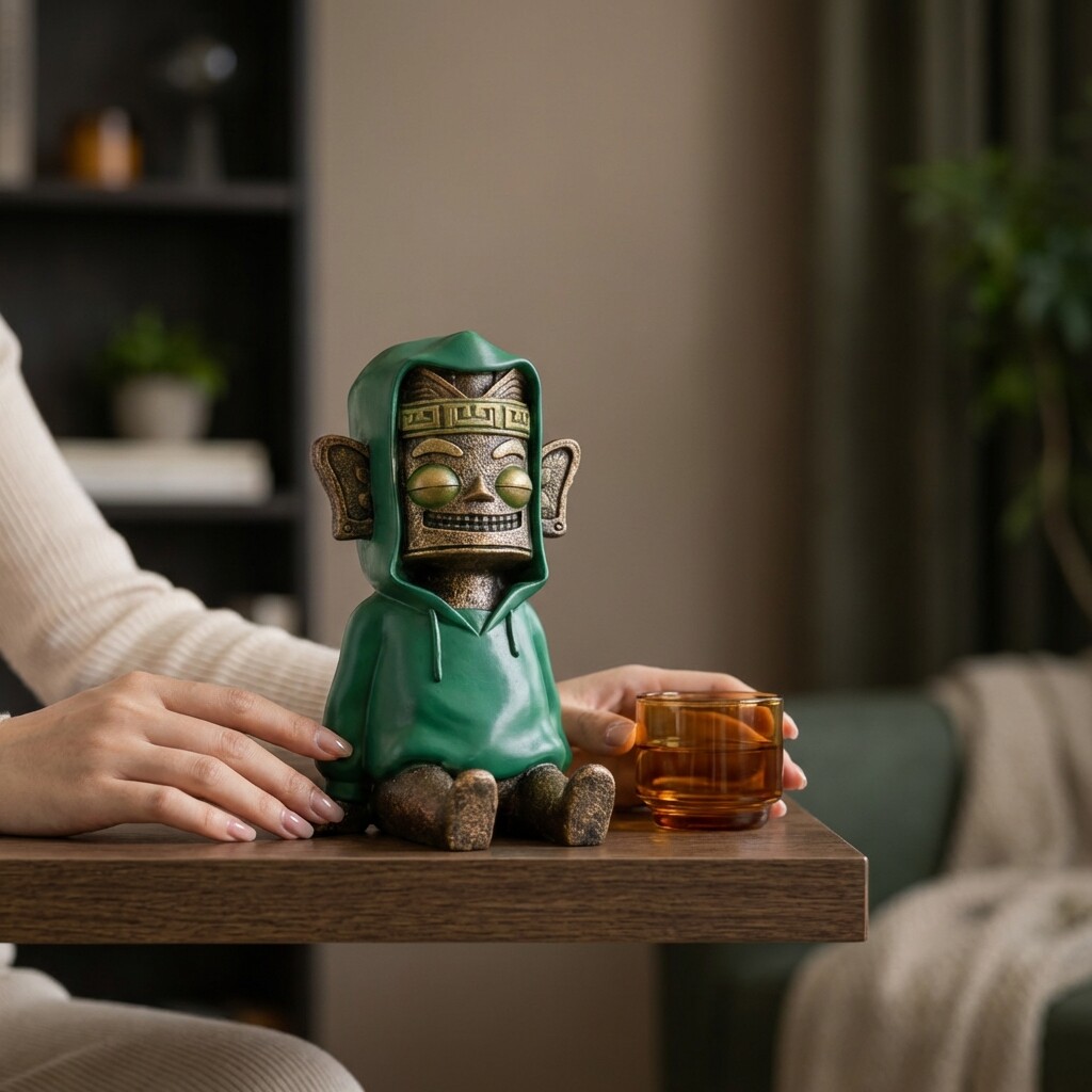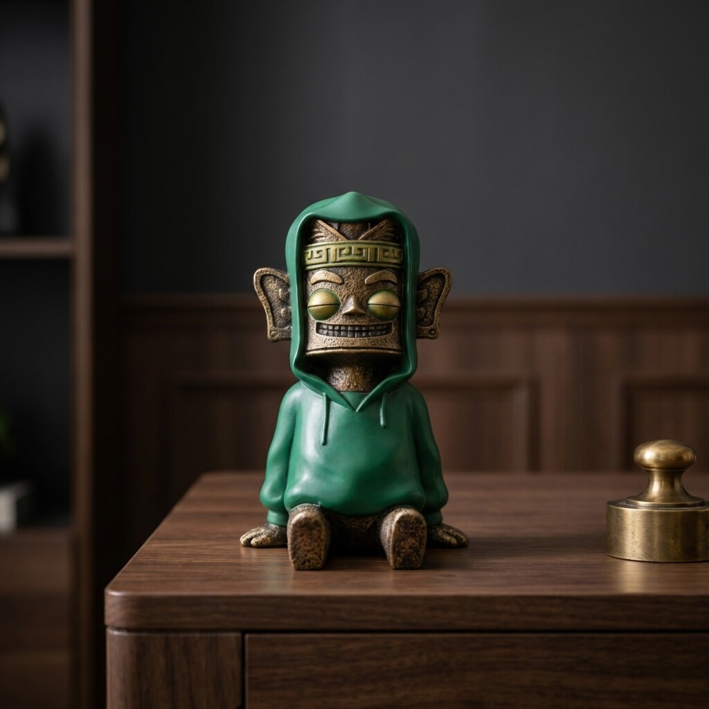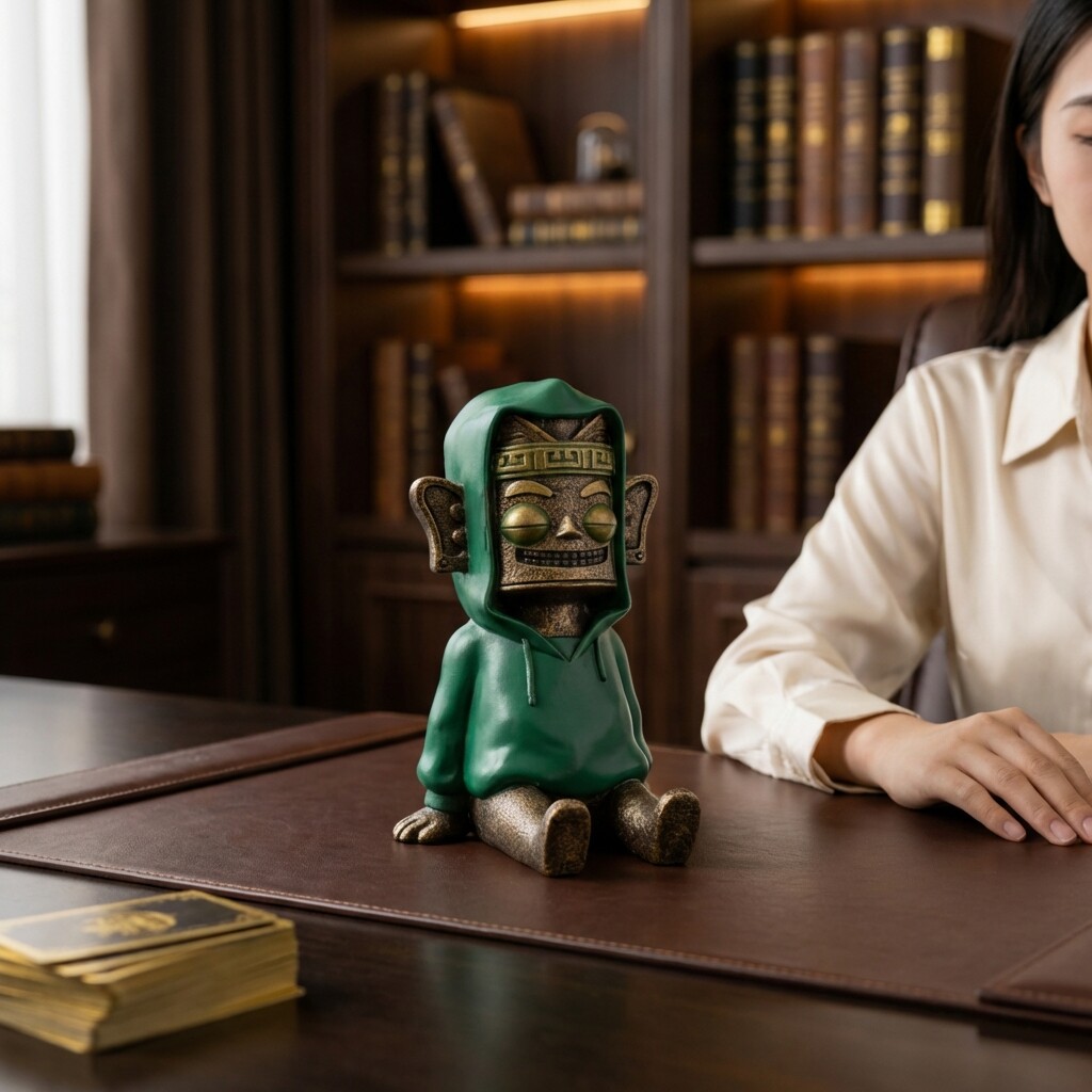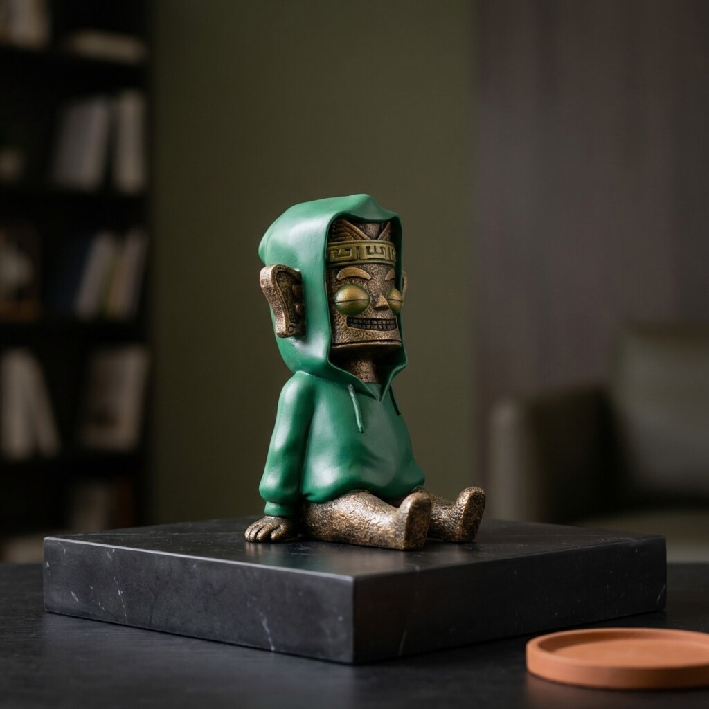 中式复古绿色石像装饰摆件书房客厅桌面工艺品氛围感装饰