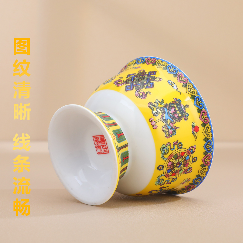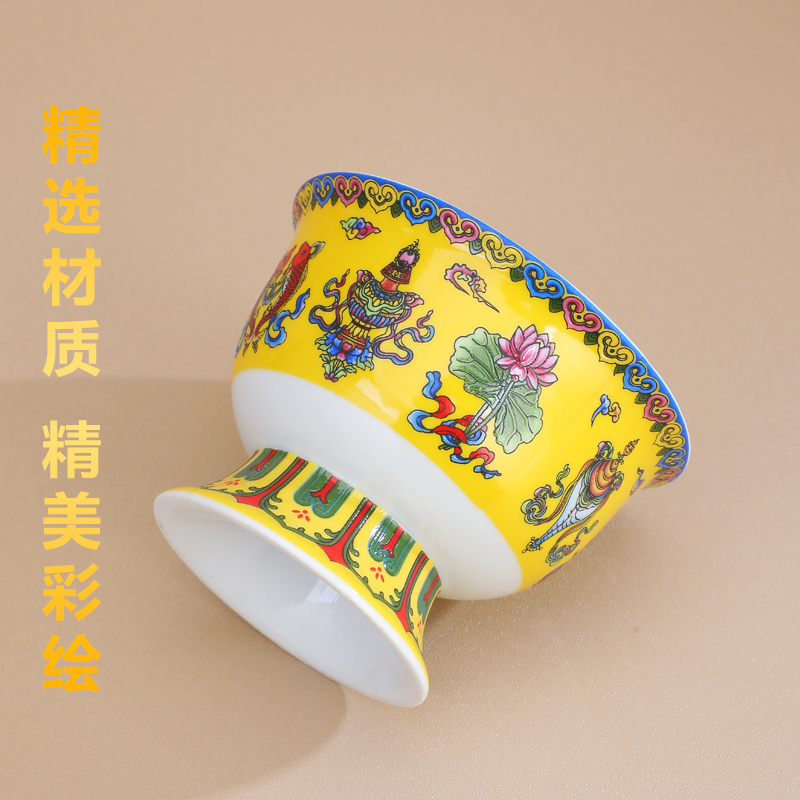 藏式供水杯陶瓷彩绘八吉祥供佛杯家用佛前供奉碗净水杯佛堂七供碗