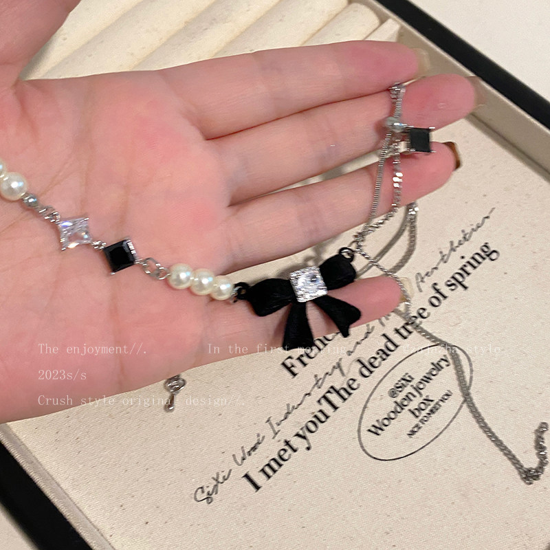蝴蝶结珍珠项链女款轻奢小众高级感气质配饰小香风日常甜酷毛衣链