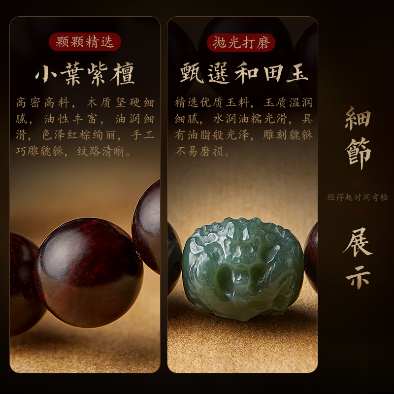 小叶紫檀手串男士文玩女和田玉十二生肖手錬盘玩佛珠念珠手持把件