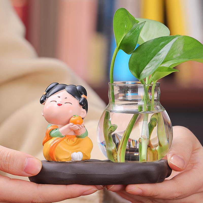 可爱唐仕女卡通娃娃水培摆件家居客厅装饰桌面工位解压公仔绿萝瓶